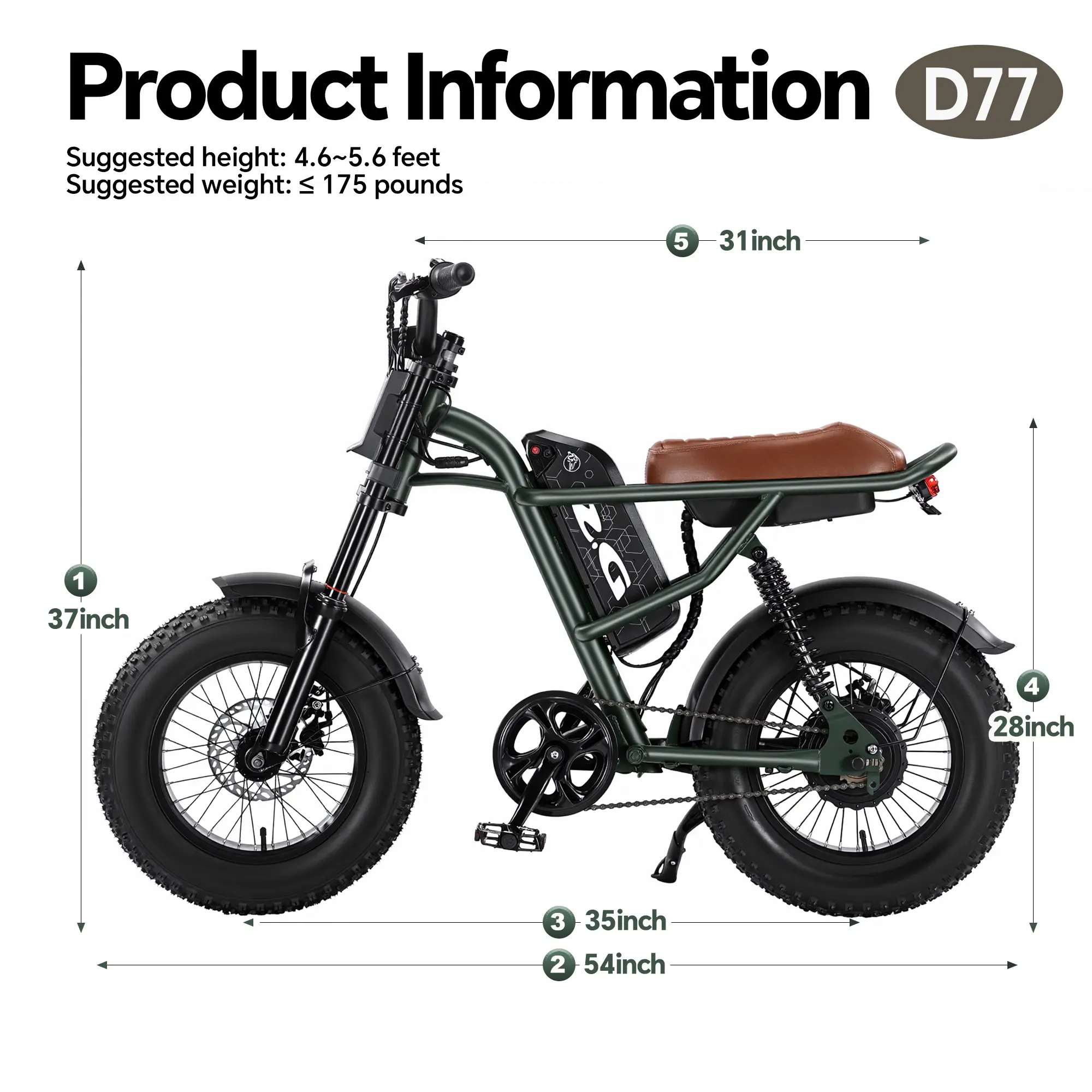Excellent bike fast and very easy to assemble it’s my first E-bike it feels great to ride it it’s like a mini motorcycle with out the insurence and gas and all of that stuff