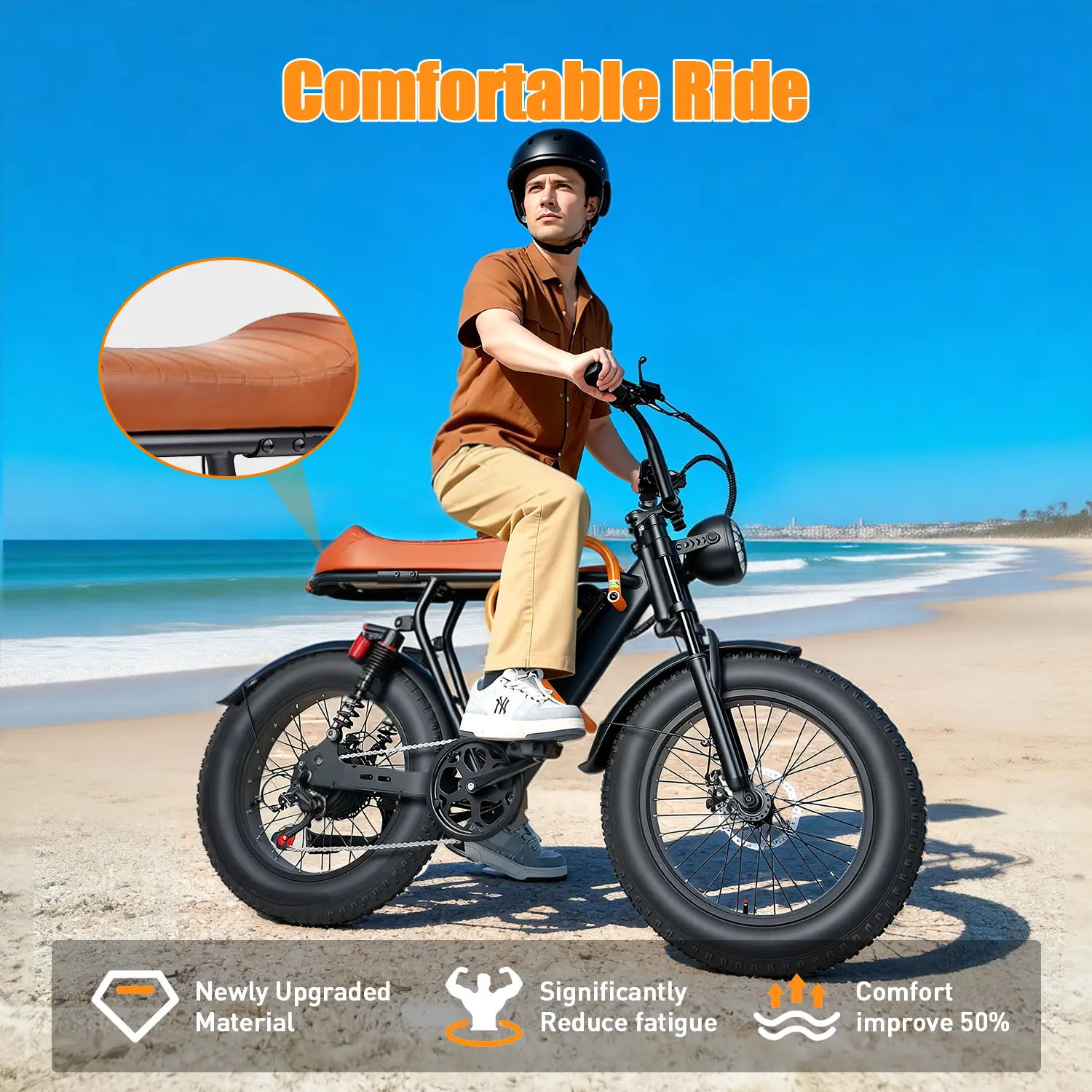 This electric bike delivers serious performance with unbeatable value. Powered by a 1500W peak motor, it reaches speeds of up to 28 MPH and handles hills with ease. The 48V 18Ah removable battery provides a 40–50 mile range, making it ideal for daily commuting or longer rides.