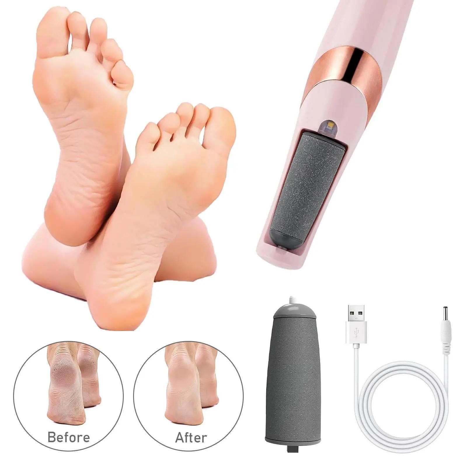 ·Package: Electric Foot Callus Remover manicure set comes with 1 handle, 2 roller heads and a USB charging cord that works with any wall adapter (wall adapter not included)