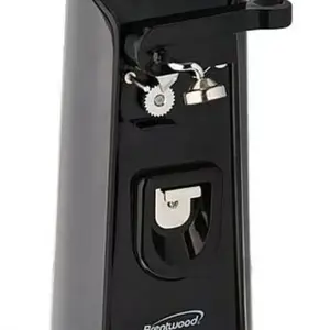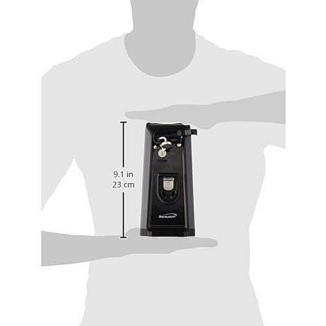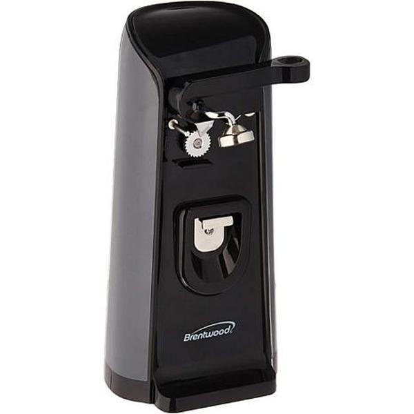 Brentwood Electric Can Opener - BREJ-30B Make life easier with the 3-in-1 Brentwood J-30B Tall Electric Can Opener with Knife Sharpener and Bottle Opener. Our extra tall can opener has auto pierce and shutoff, capable of opening any size can the first time. Its magnetic lid holder prevents the lid from falling into the can so you can avoid any potential mess. Cleanup is a breeze by simply removing the one-touch lever to clean the blade assembly. Keep your kitchen clutter-free with the conveniently built-in manual ceramic knife sharpener and bottle opener. What You Get Electric Can Opener with Knife Sharpener and Bottle Opener