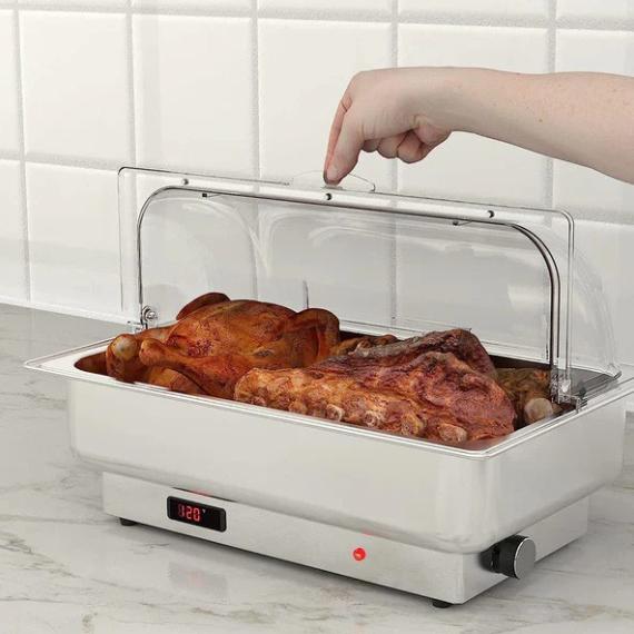 The large-capacity electric chafing dish serves many guests, ideal for catering, parties, restaurants , and more.