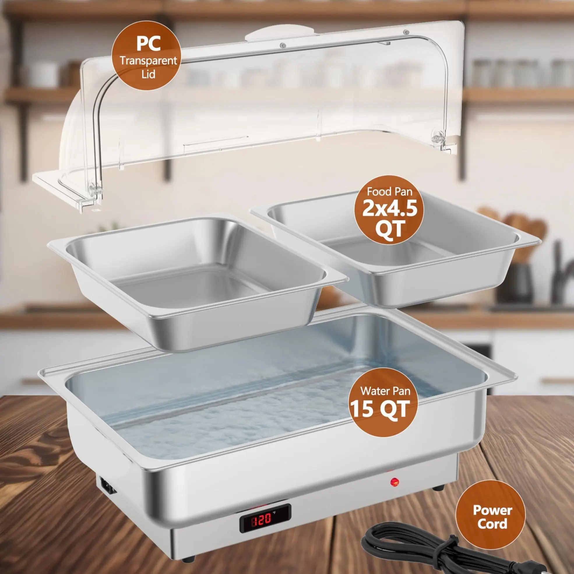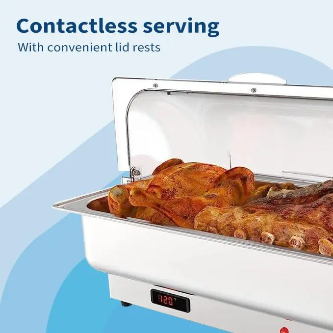The large-capacity electric chafing dish serves many guests, ideal for catering, parties, restaurants , and more.