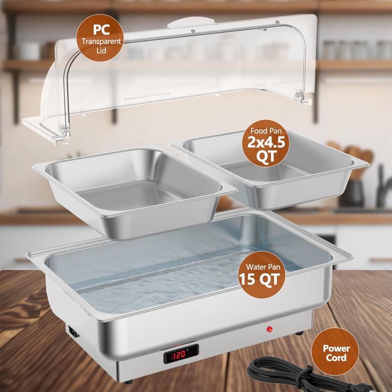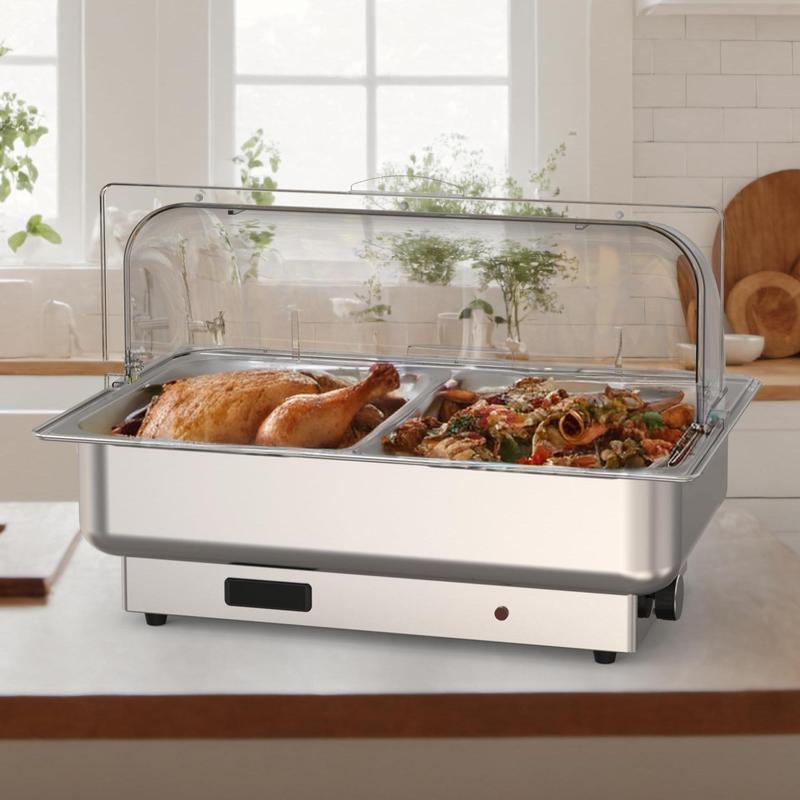 The large capacity electric chafing dish can serve many guests and is a great choice for hosting parties and holiday dinners, including catering, parties, restaurants, buffets, hotels, and wedding brunches.