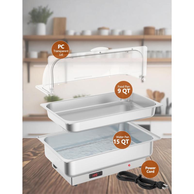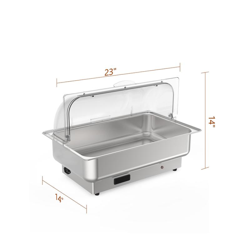 · 【Easy to Clean & Maintain】Clean up is a breeze with this electric chafing dish buffet set, as it can be easily cleaned with dishwashing liquid and the food pan is dishwasher safe. Simply add water to the water pan before use and enjoy worriless catering with this convenient and versatile electric chafing dish.You can use it to both keep warm and cold for your different situations.