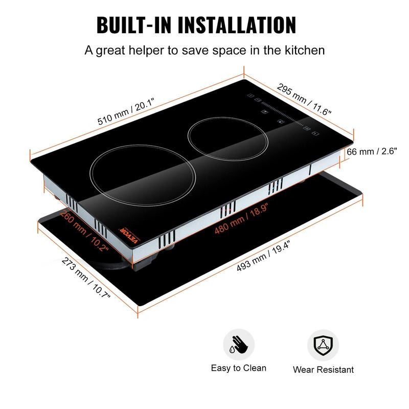 ·Separate Cooking Zones: Our ceramic cooktop features 2 independent cooking zones with a total power of 1800W. The surface of our radiant cooktop is made of glass, ensuring that it is heat-proof and easy to clean. Besides, the body has excellent heat dissipation and is sturdy & durable for long-term usage. This cooktop is your best choice for a high-quality cooking experience.