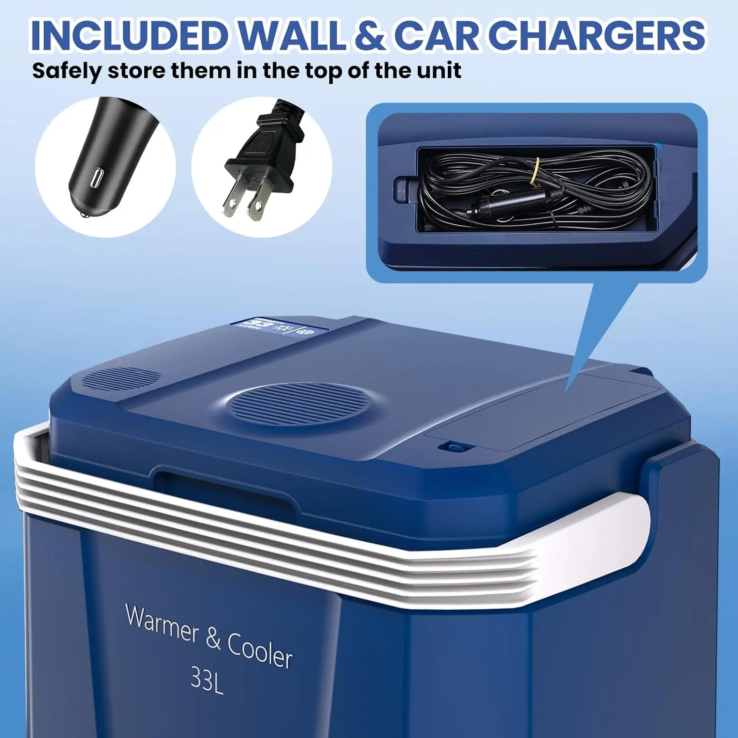 35 Quart Interior Compartment: The electric cooler interior is spacious enough to accommodate from numerous bottles, food containers, utensils, to-go meals, refrigerated medications, to even 2-liter soda bottles! The easy-clean design allows for quick wipe-downs in minimal maintenance