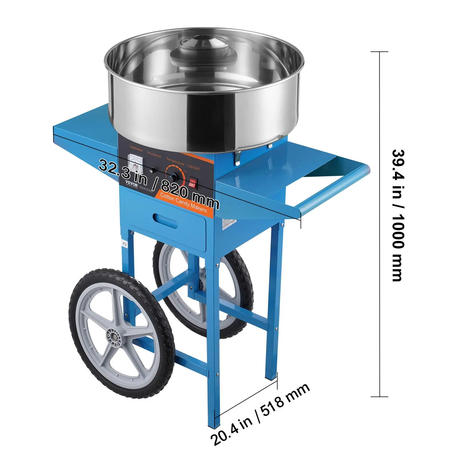 • Temp Control: Unlike the common ones, our electric candy floss maker features a voltage meter and a temp control knob. By changing voltage, you can simply adjust the temperature from 244.9°F/118.3℃ to 439.2°F/226.2℃. If you want to try different flavored sugars, you will absolutely need this.