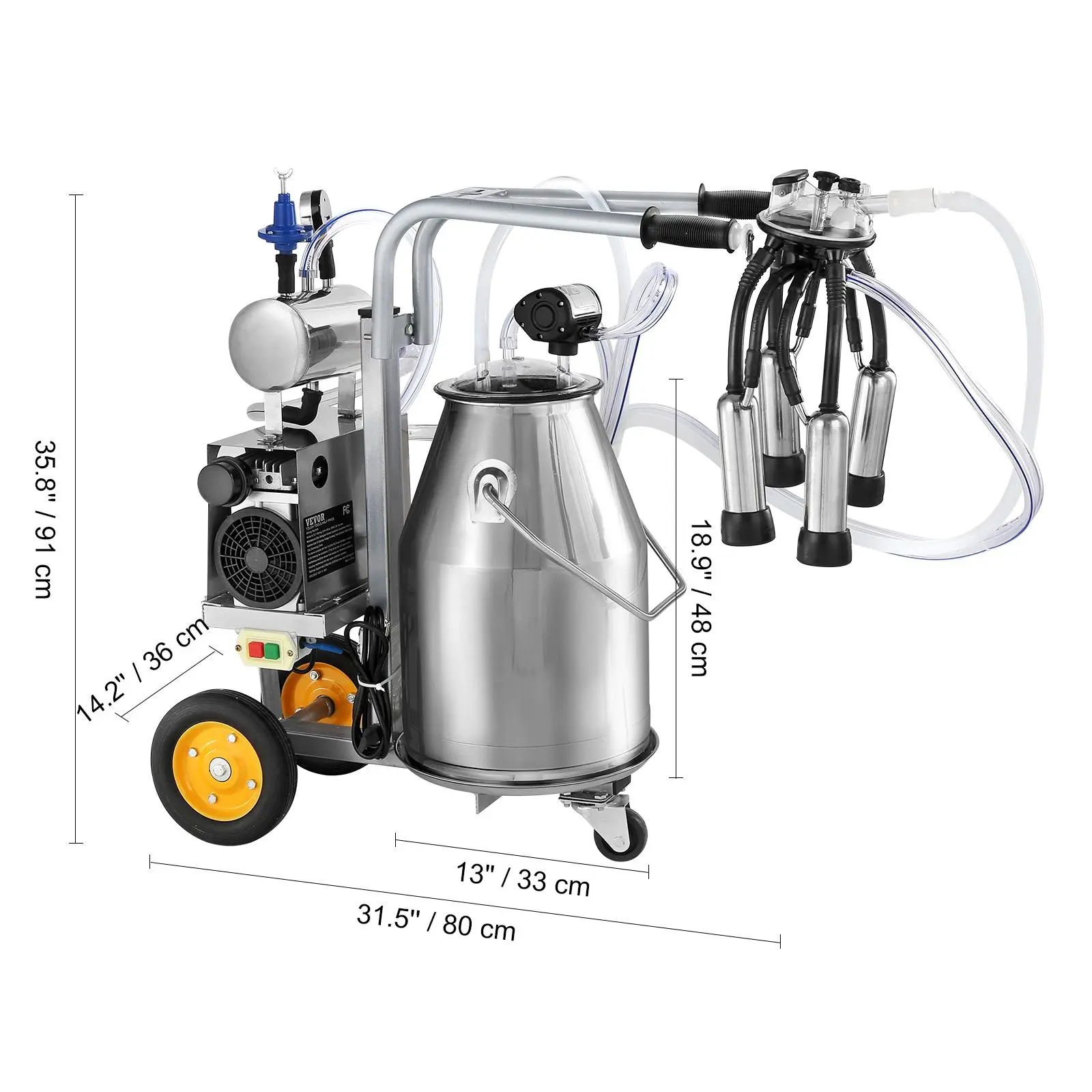• Move with Ease: This milking machine for cows features a sturdy steel cart. The large heavy-duty wheels and non-slip handle make it easy to move around your farm. Transporting a full-filled milk bucket has never been easier.