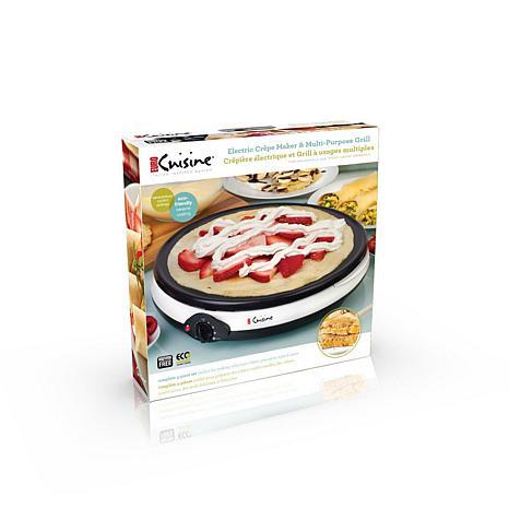 Euro Cuisine Electric Crepe Maker Prepare delicious homemade crepes at home with Euro Cuisine! This crepe maker works on any counter top to create light and delicate crepes rolled with your favorite savory or sweet ingredients!  What You Get Electric Crepe Maker Batter Spreader Crepe Turner Ladle Manufacturer's Limited 3-Year Warranty