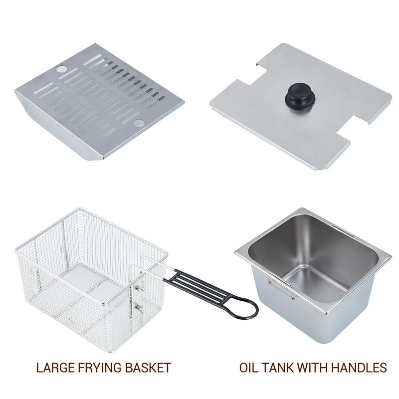 · Large Capacity: Featuring one 12.68QT/12L oil tank, this deep fryer perfect for delis, snack bars, and events.