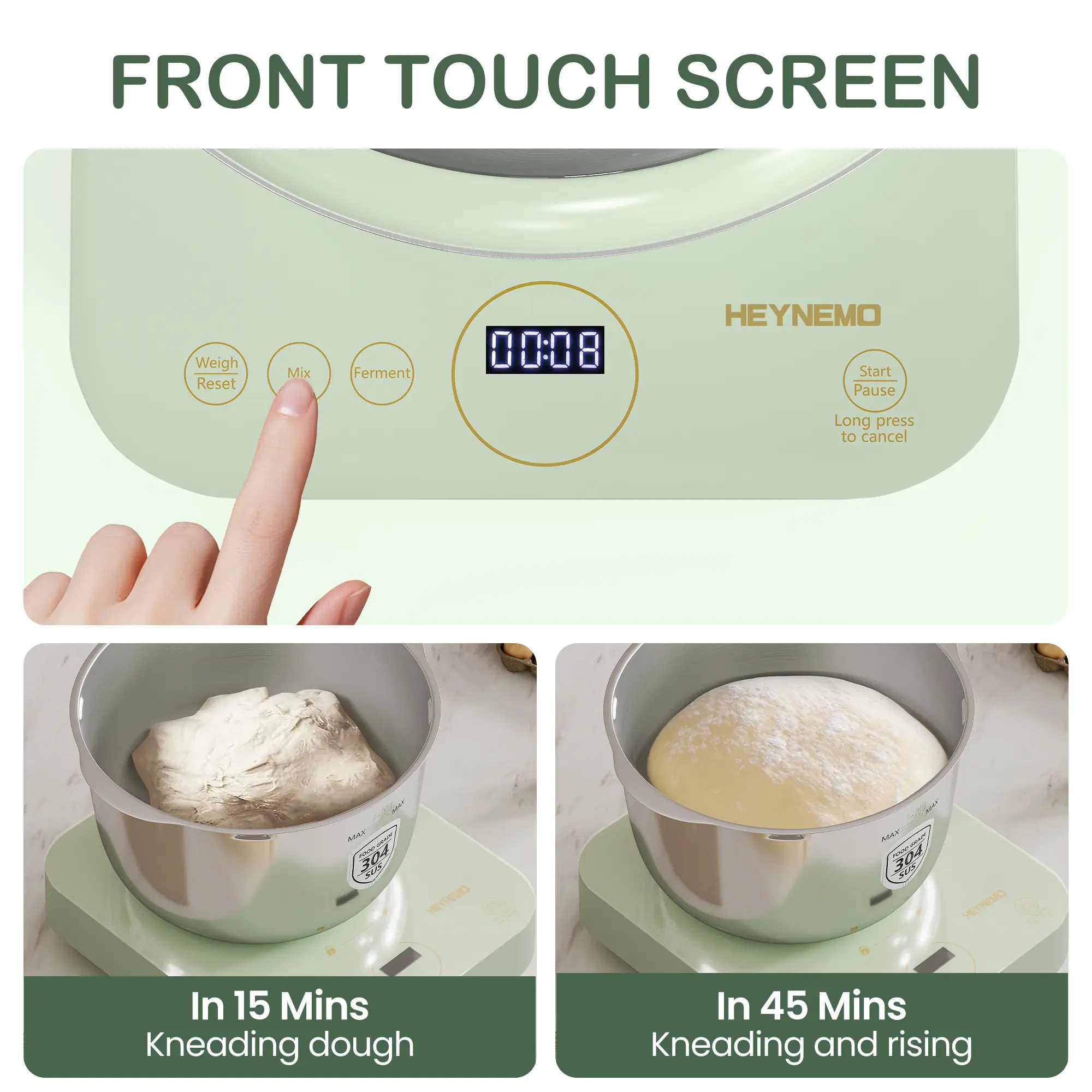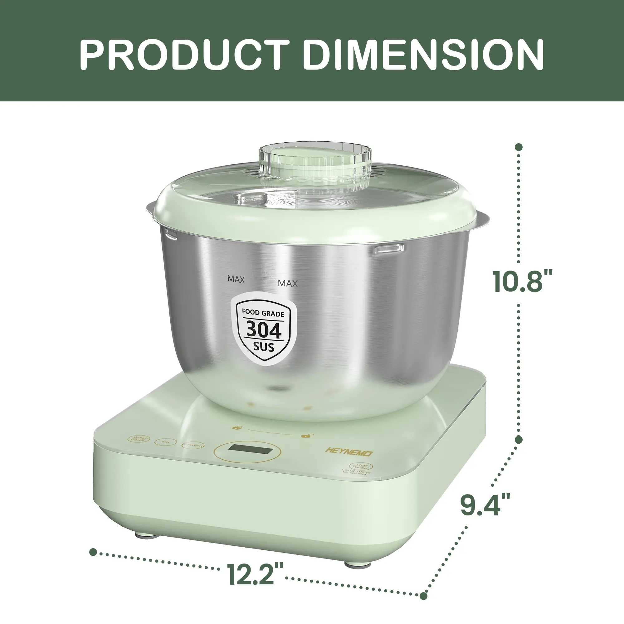 Specifications 📝- Material: Stainless Steel Bowl- Capacity: 5.2qt- Function: Dough Making, Weighing, Ferment Function- Panel: Face-up Touch Panel