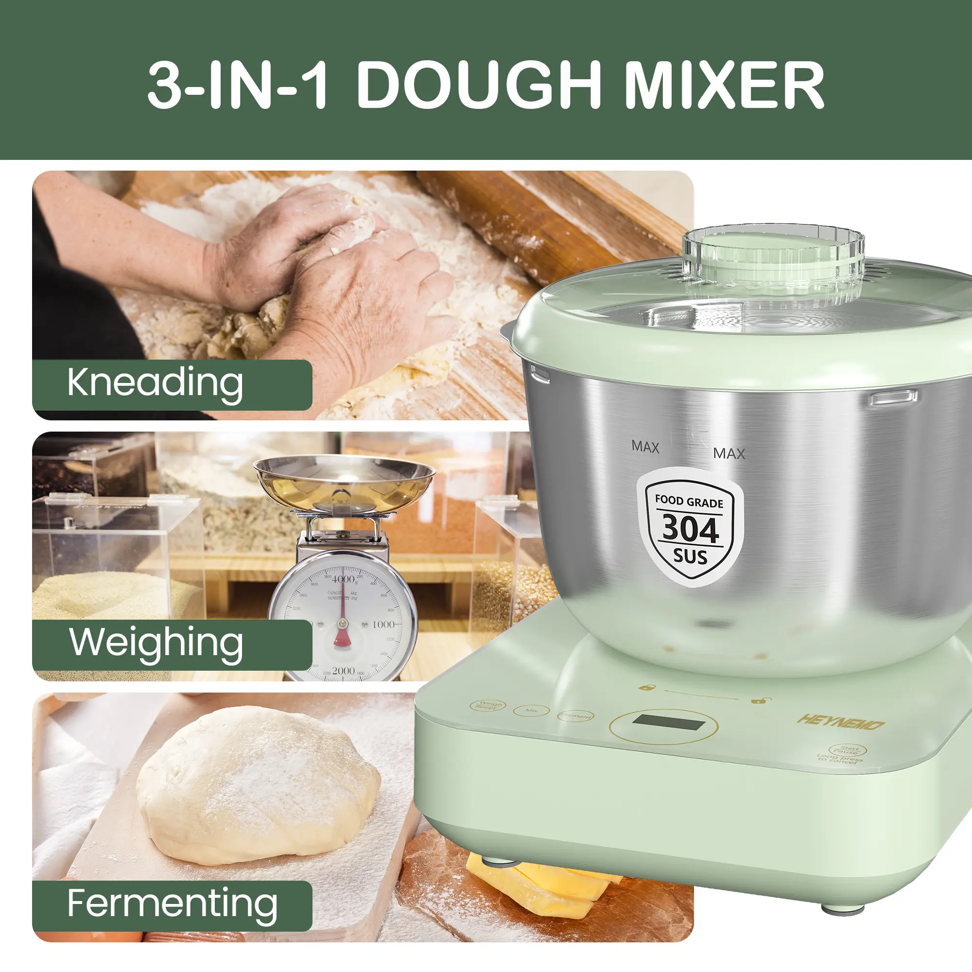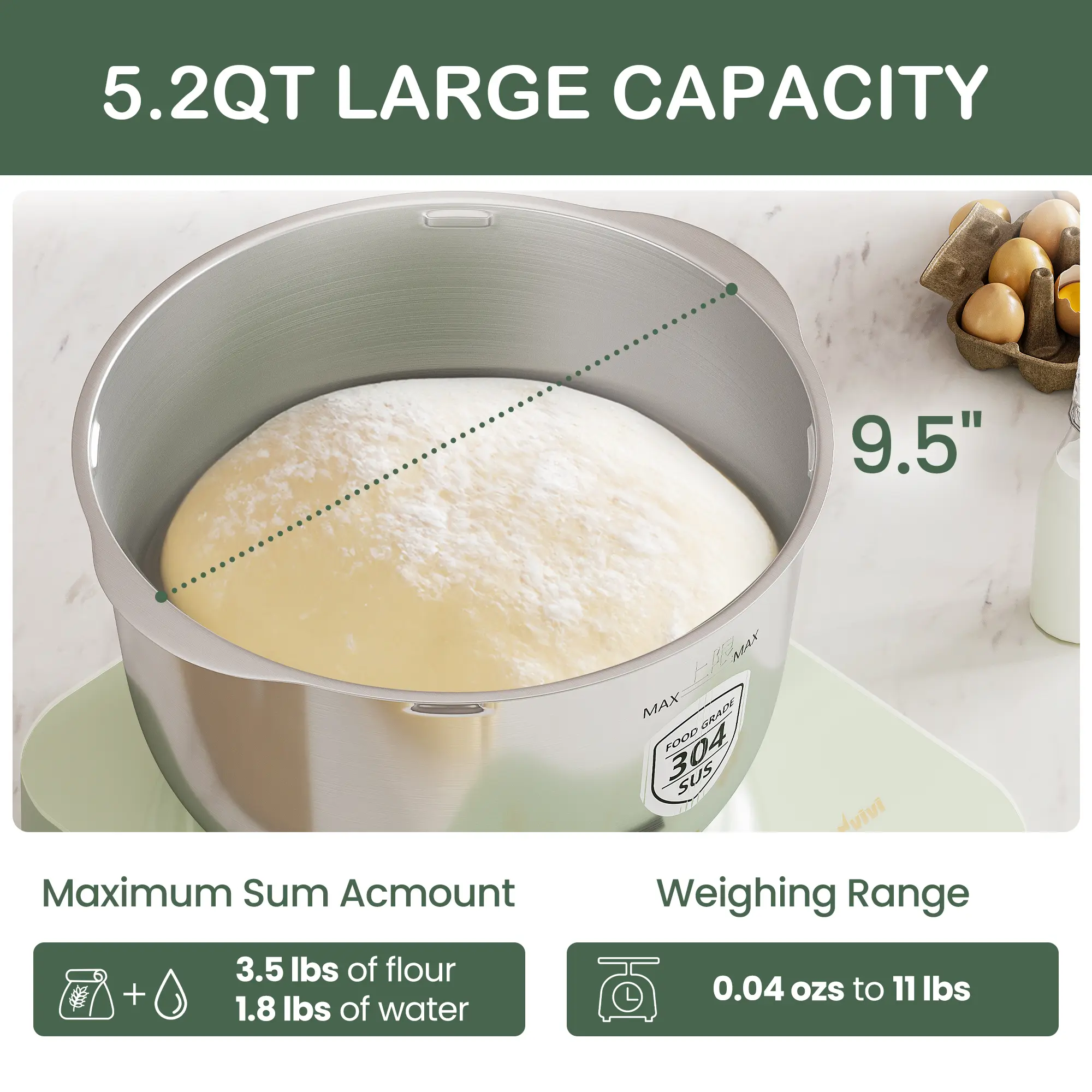 Multi-functional Capabilities 🌟- Weighing Function: Supports dough weights from 2.2 lbs to 11 lbs, ensuring precise measurements and consistent results.- Versatile Use: Suitable for both novice and experienced bakers, making it a versatile addition to any kitchen.