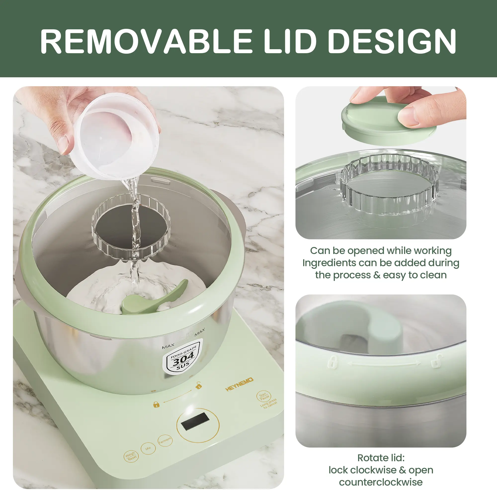 Easy Cleaning 🧼- Stainless Steel Inner Liner: Ensures durability and ease of cleaning.- Removable Top Cover and Kneading Blade: Facilitates thorough cleaning and easy ingredient addition.