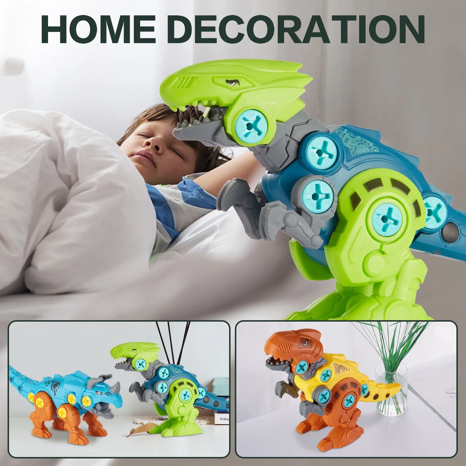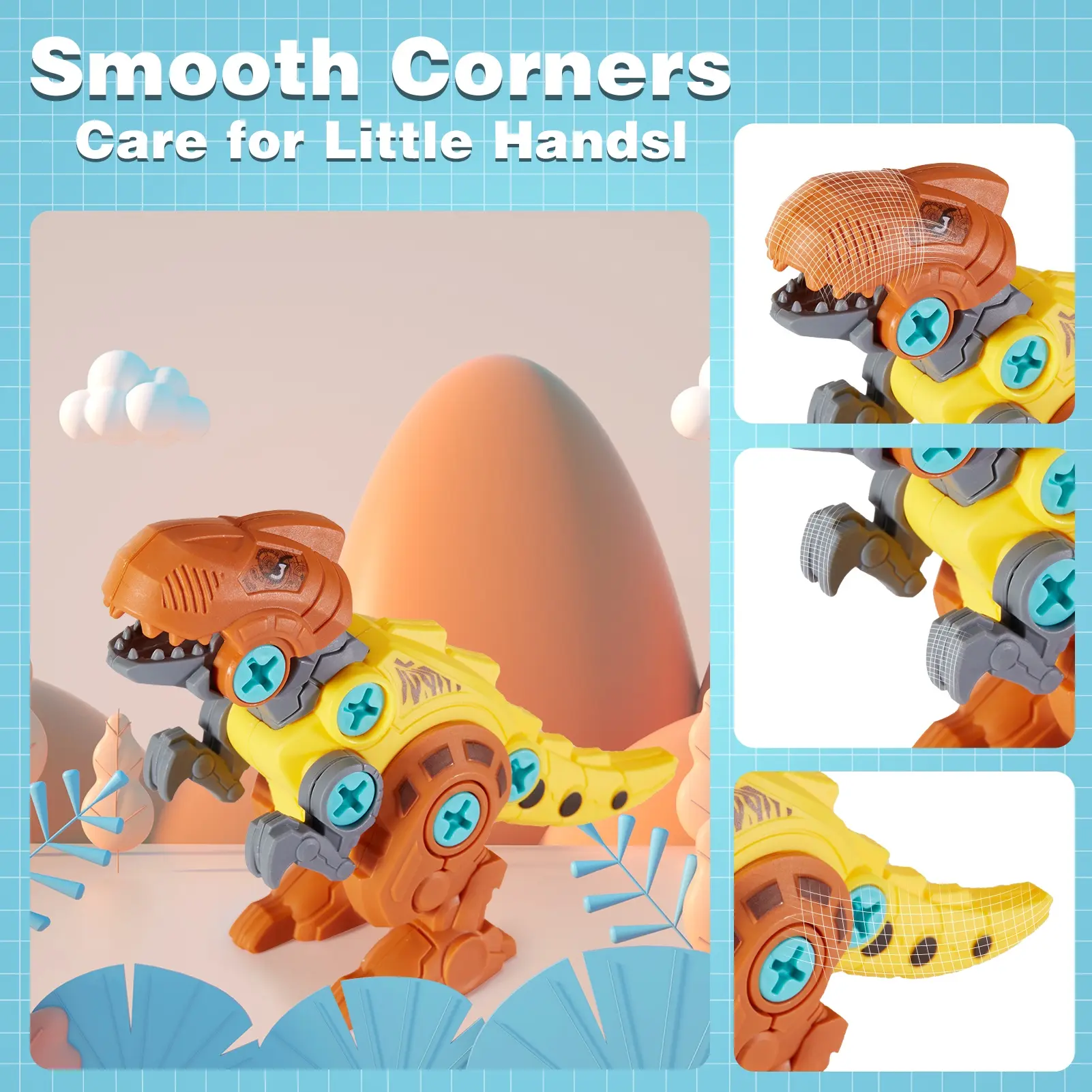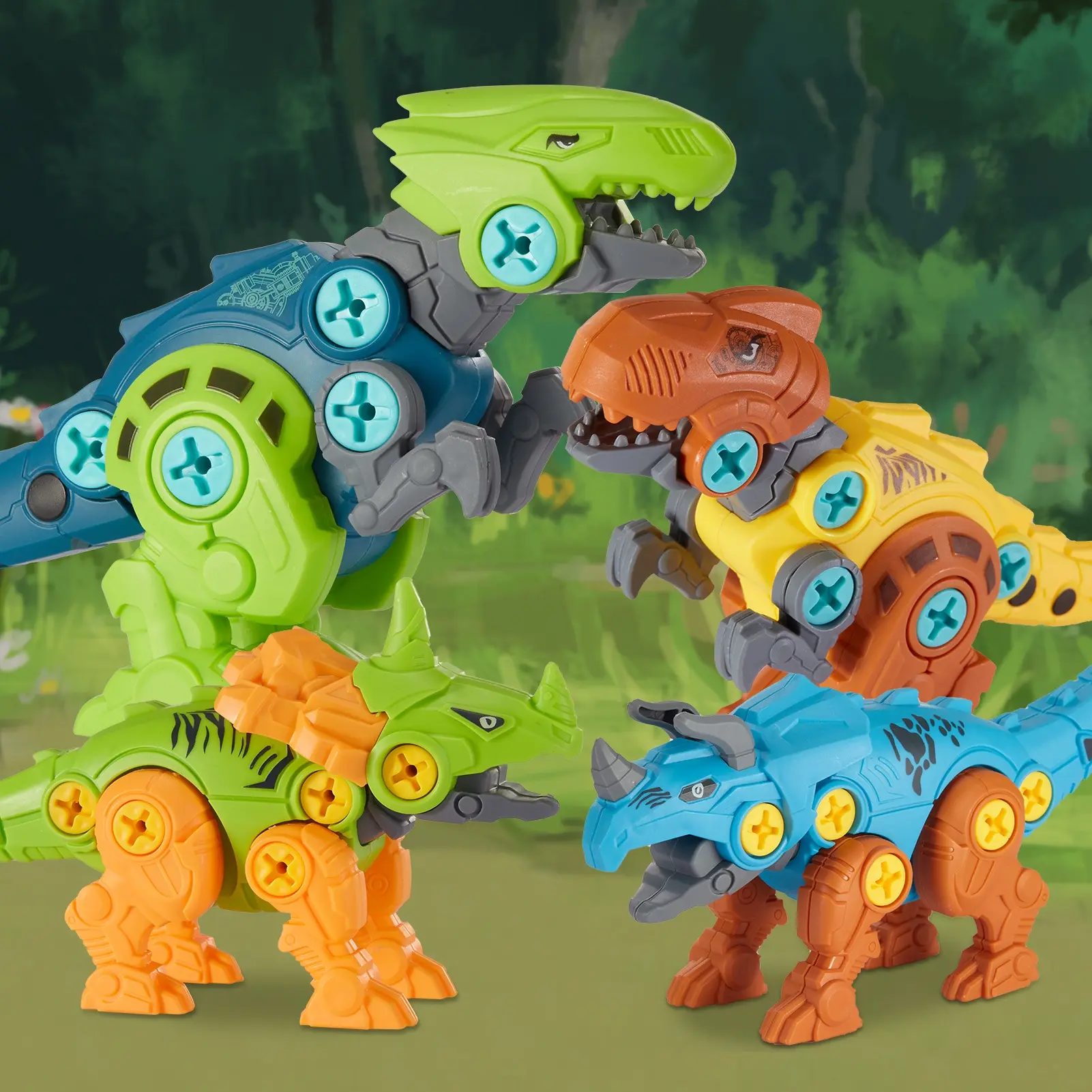 Introducing the 4-Piece Dinosaur Take Apart Toys with Electric Drill. This engaging set allows children to disassemble and reassemble vibrant dinosaur models using a toy electric drill. It fosters creativity, fine motor skills, and problem-solving abilities. Perfect for young builders!