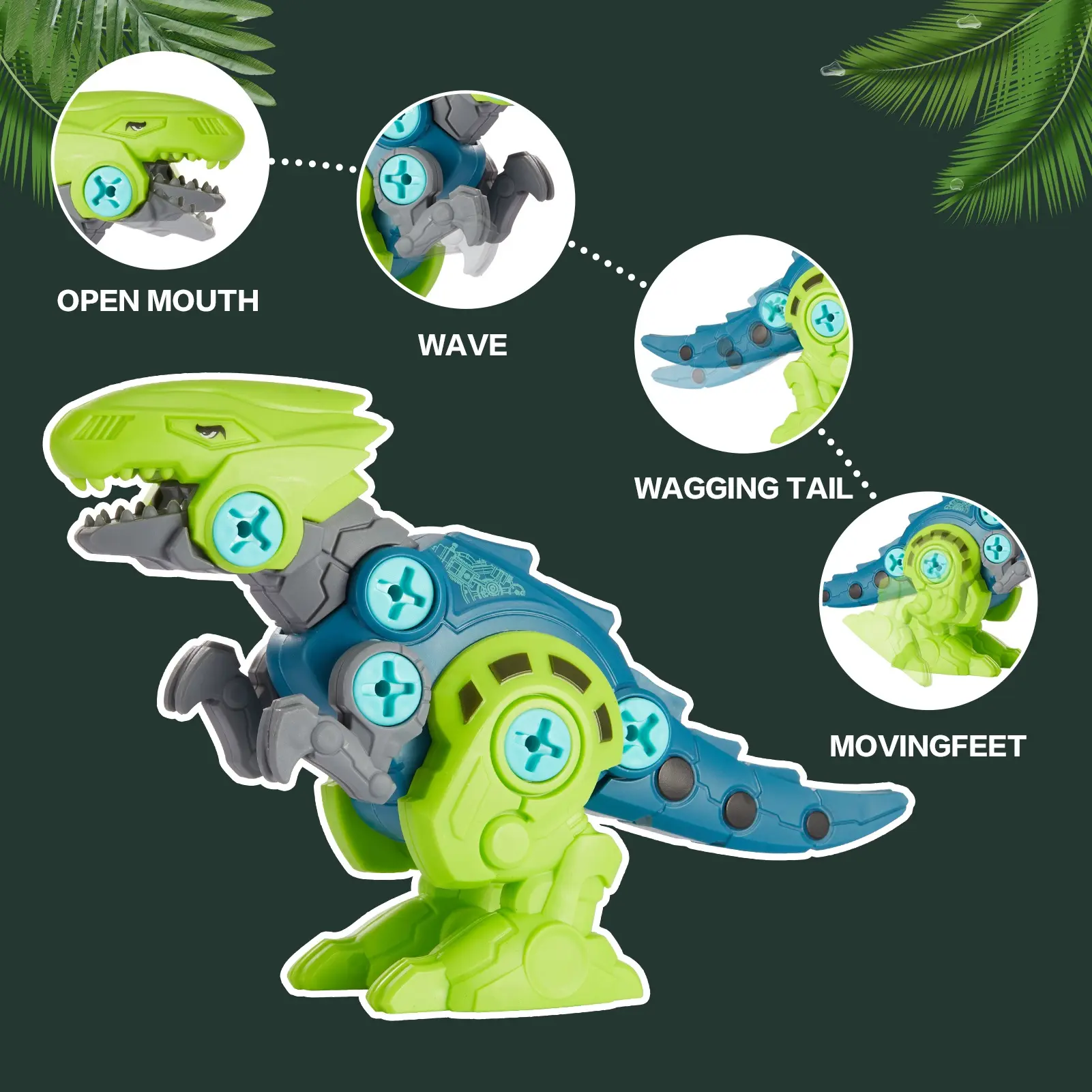 ·4-Piece Interactive Fun: Includes four dinosaur parts and an electric drill.