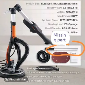 ·A Complete Set: Our wall sander includes a 215mm large sanding pad for efficient sanding, and a 360-degree surround brush to prevent dust from flying around. The package also includes a S5 hex wrench, a carbon brush, a dust collection bag, a dust collection hose, 12 sandpapers, an instruction manual, 2 sponge pads, and an extension pole.