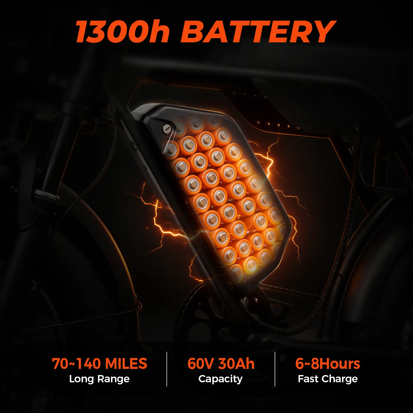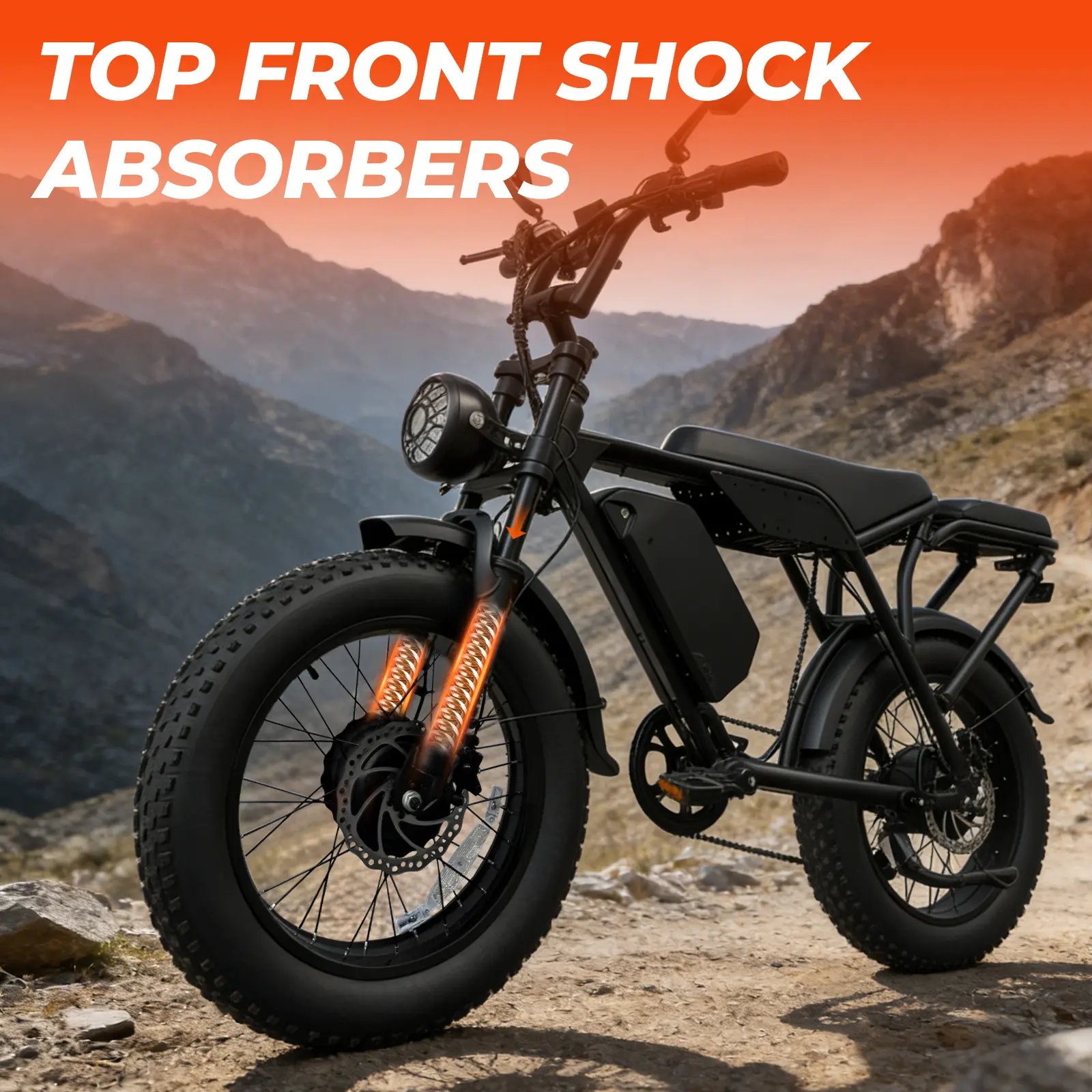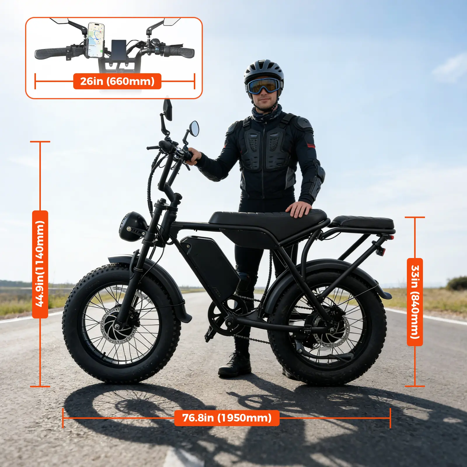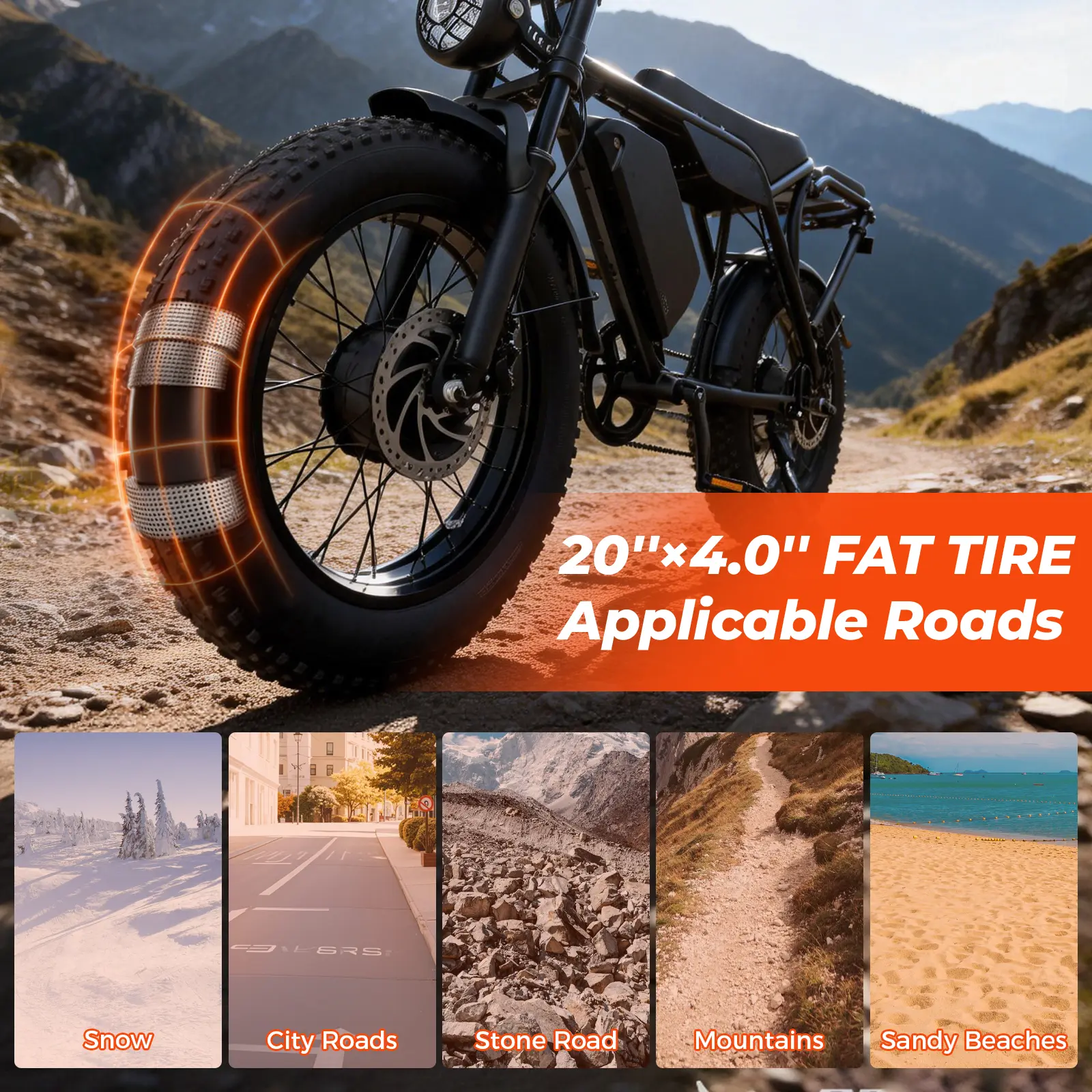 Tires: Puncture-resistant 20" x 4" fat tires for rugged terrain.