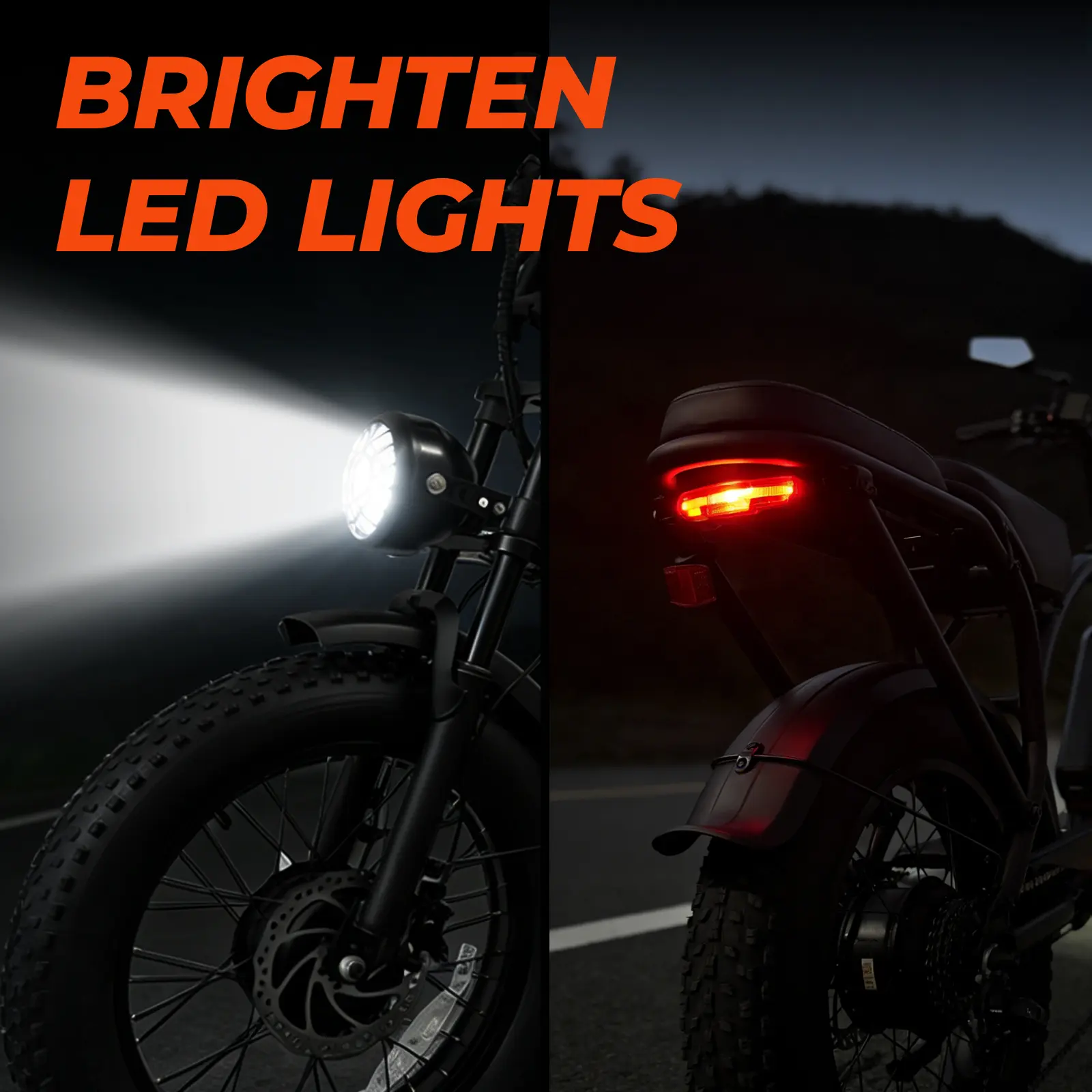 Safety: Equipped with a high-intensity ebike headlight for secure night riding.