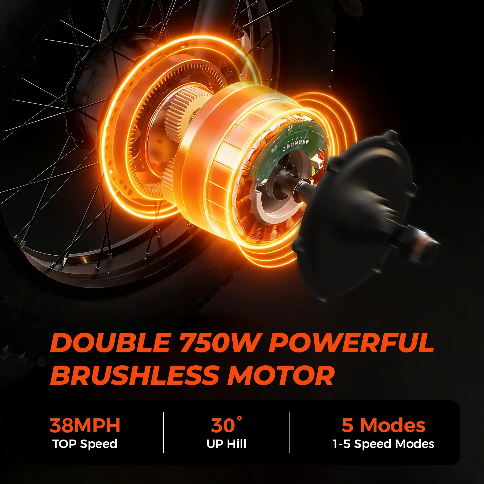 Note for Single-Motor Version: Peak power 1500W, top speed 28 mph, max climbing angle 25°.