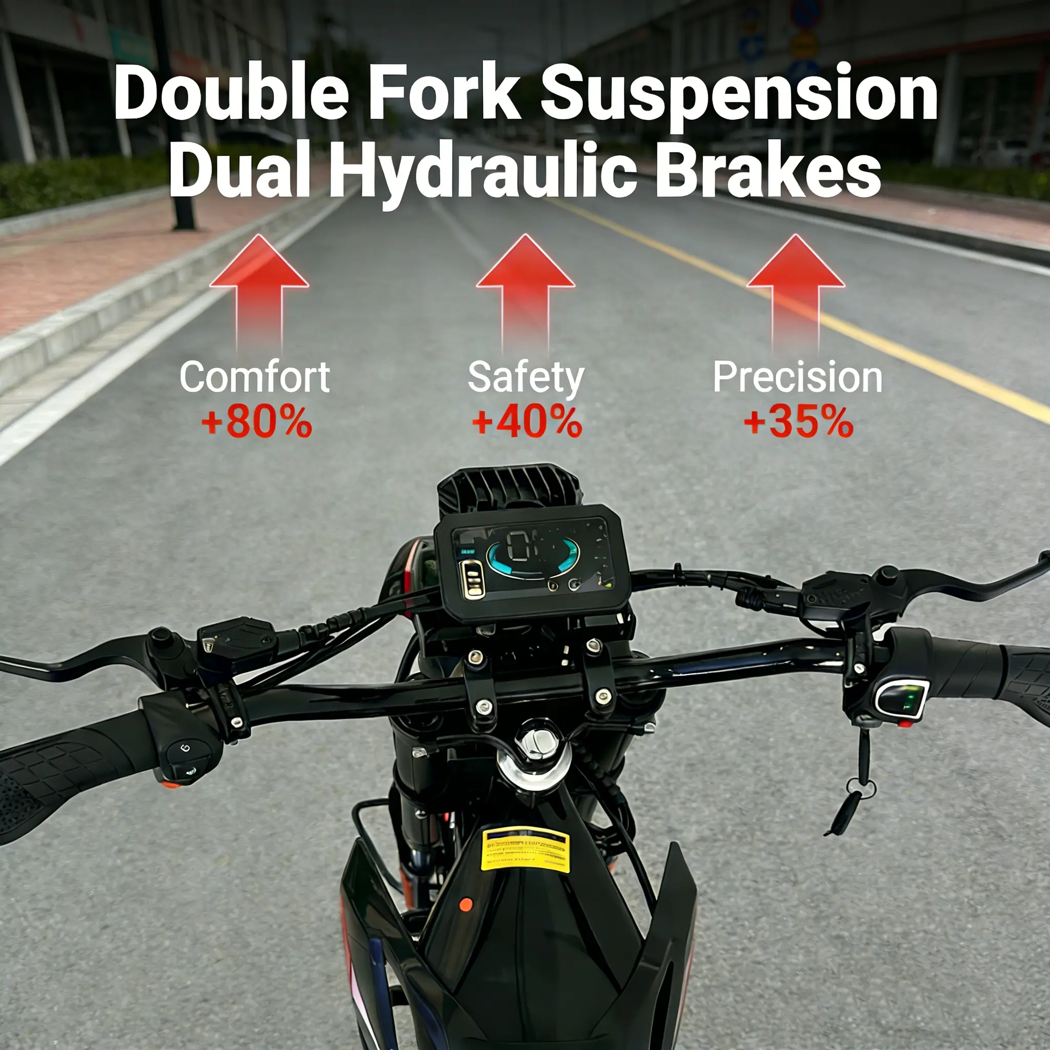 Dual hydraulic disc brakes offer 40% improved safety and 35% more braking precision, delivering instant, controlled stops at high speeds for confident riding in any environment.