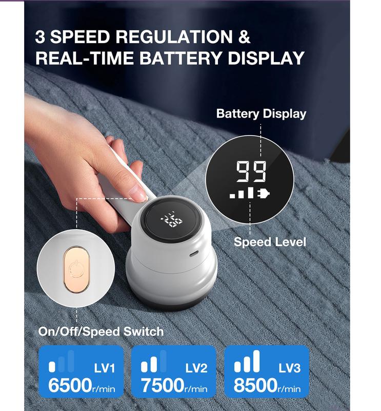 Our rechargeable fabric defuzzer offers quick charging for long-lasting performance. It features one-button start with intelligent protection for safe use. The 2600mAh battery provides 3 speeds for versatile performance. Enjoy extended use without interruptions. 🌟
