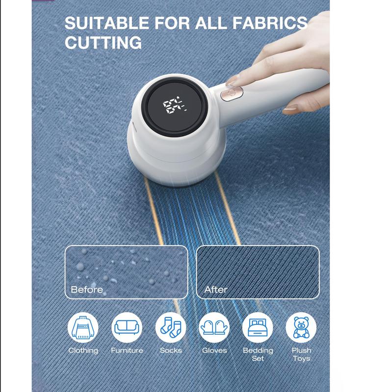 Ideal for knitted sweaters and hairballs, offering versatile fabric care. The 6-blade blade ensures efficient removal of lint. Suitable for clothes, sweaters, sheets, and sofas. Perfect for various fabrics like coats, scarves, socks, gloves, upholstery, blankets, and car seats. 🛍️