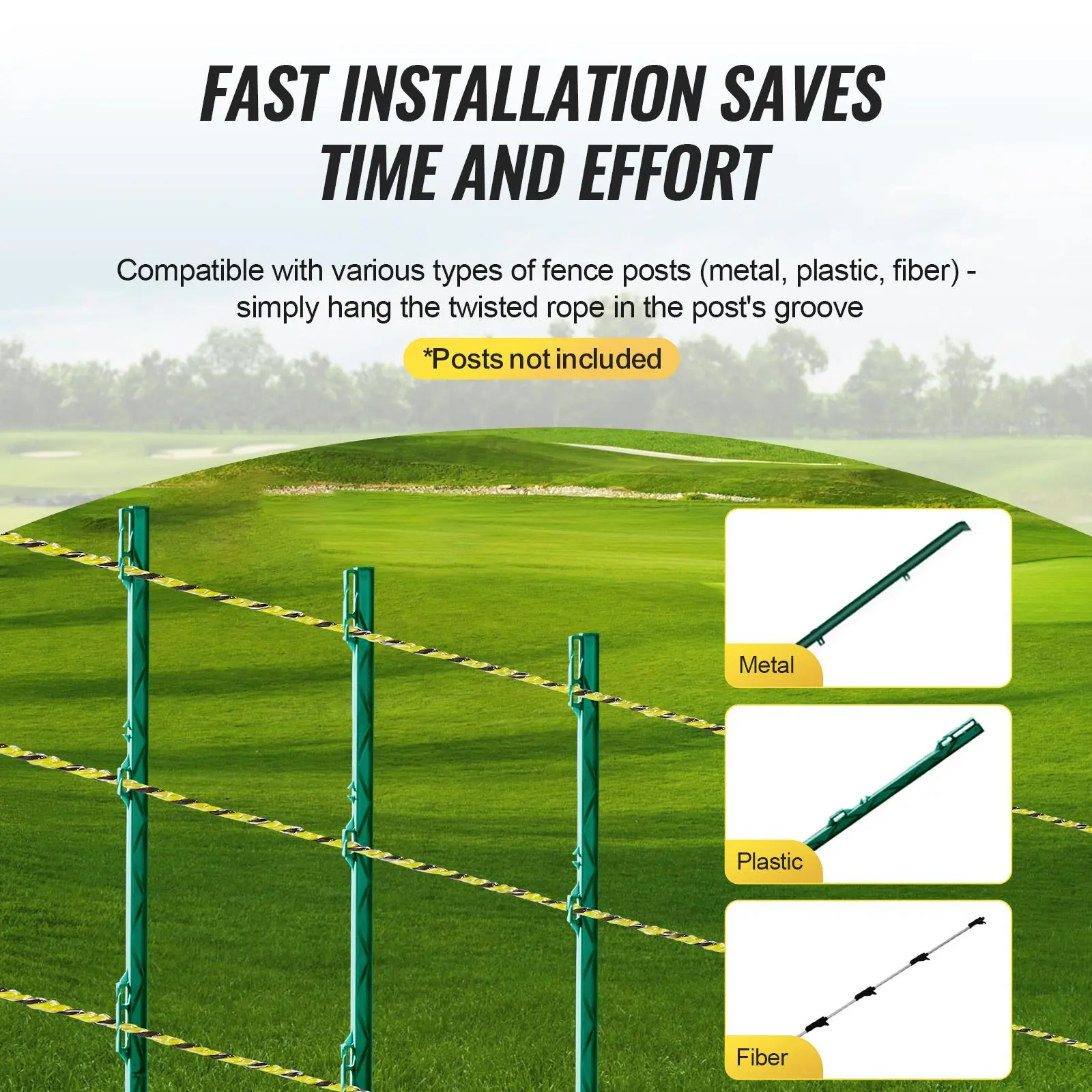• Easy Installation: Our electric fence for cattle is compatible with our's fence posts (sold separately), the included ABS plastic reel makes winding and unwinding the wire simple, streamlining the installation process.