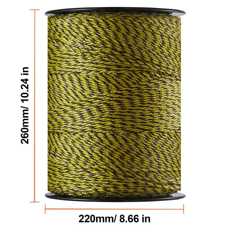 • Durable and Wear-Resistant Material: Made from woven HDPE fibers and 6 strands of stainless steel wire, this portable electric fencing wire features high tensile strength, lightweight construction, and easy installation. It resists rust and is suitable for long-term reuse. It is also easy to remove and store, reducing environmental impact and protecting pastureland.