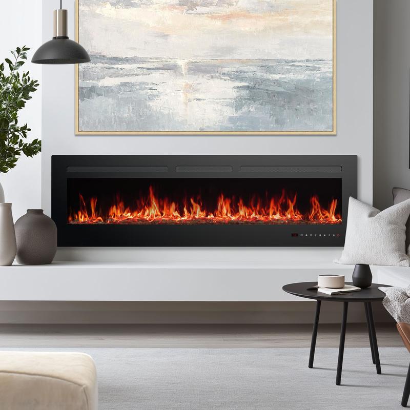 ·Multiple Install Methods: This electric fireplace gives you the flexibility to choose between three installation options: mount it on the wall for a modern, floating look, place it as a free-standing unit with feet, or recess it into the wall for a sleek, built-in appearance