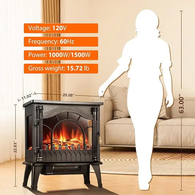 ·Fast Heating Space Heater: Differ from traditional fireplace which makes your room with smoke and costs high amounts of money on wood and sweeping chimney, Antarctic Star Free-standing Fireplace Stove is an economic choice for you, which has 2 heating power modes: 1000W/1500W. The portable size of 11.02"D x 20.08"W x 22.83"H.
