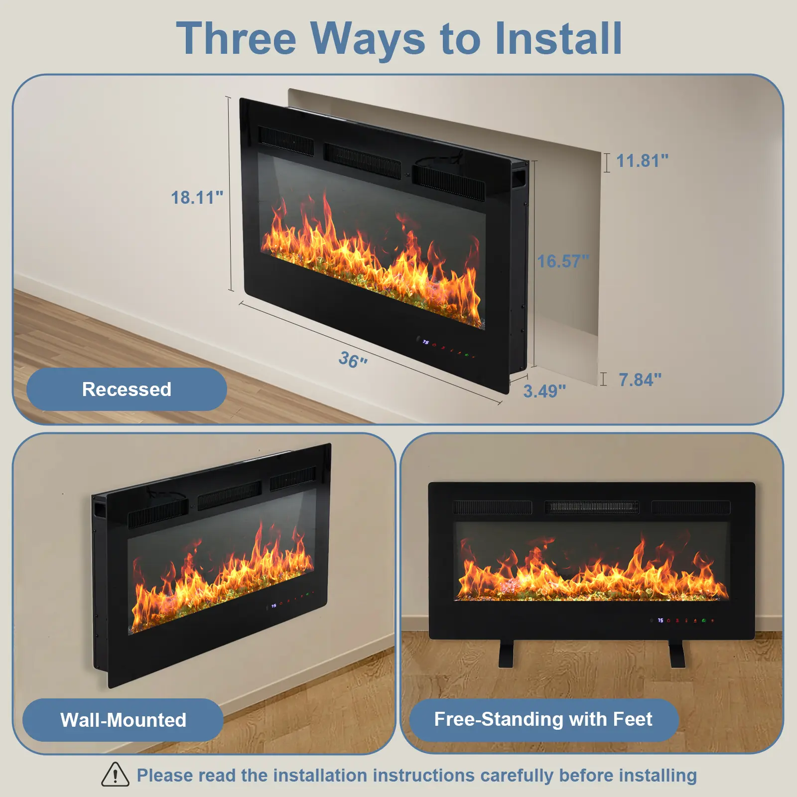 ·Attractive and Practical Design: 3.86"D x 60"W x 18.11"H,The thickness of the new style is only 3.86 inches while the old one is 6 inches. And it operates the same as the old one. Also we redesign the location of main power and power cable, which makes the new fireplace more attractive and practical.
