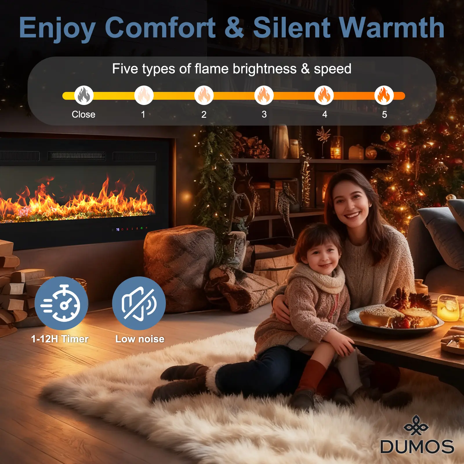 Electric Fireplace Insert, 60-inch touchscreen, remote control, 12 lighting modes/5 lighting levels, dual power supply for energy-saving heating, ETL safety certified