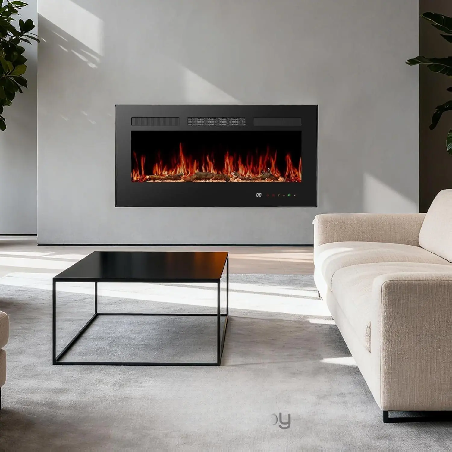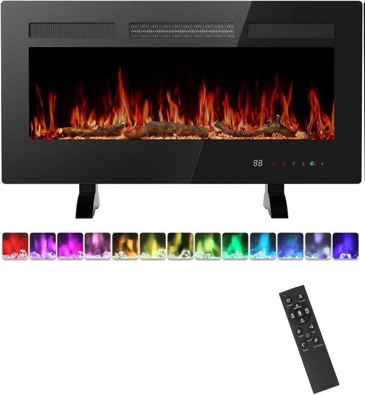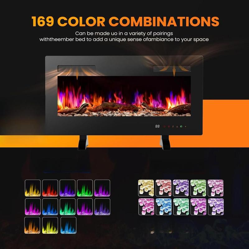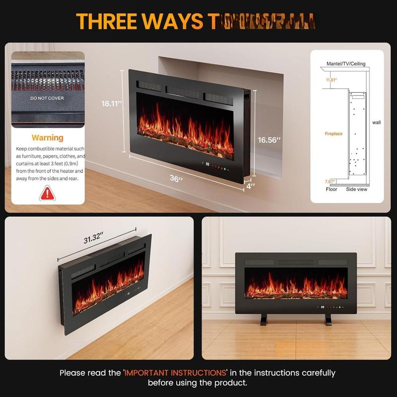 ·Multiple Install Methods: This electric fireplace gives you the flexibility to choose between three installation options: mount it on the wall for a modern, floating look, place it as a free-standing unit with feet, or recess it into the wall for a sleek, built-in appearance