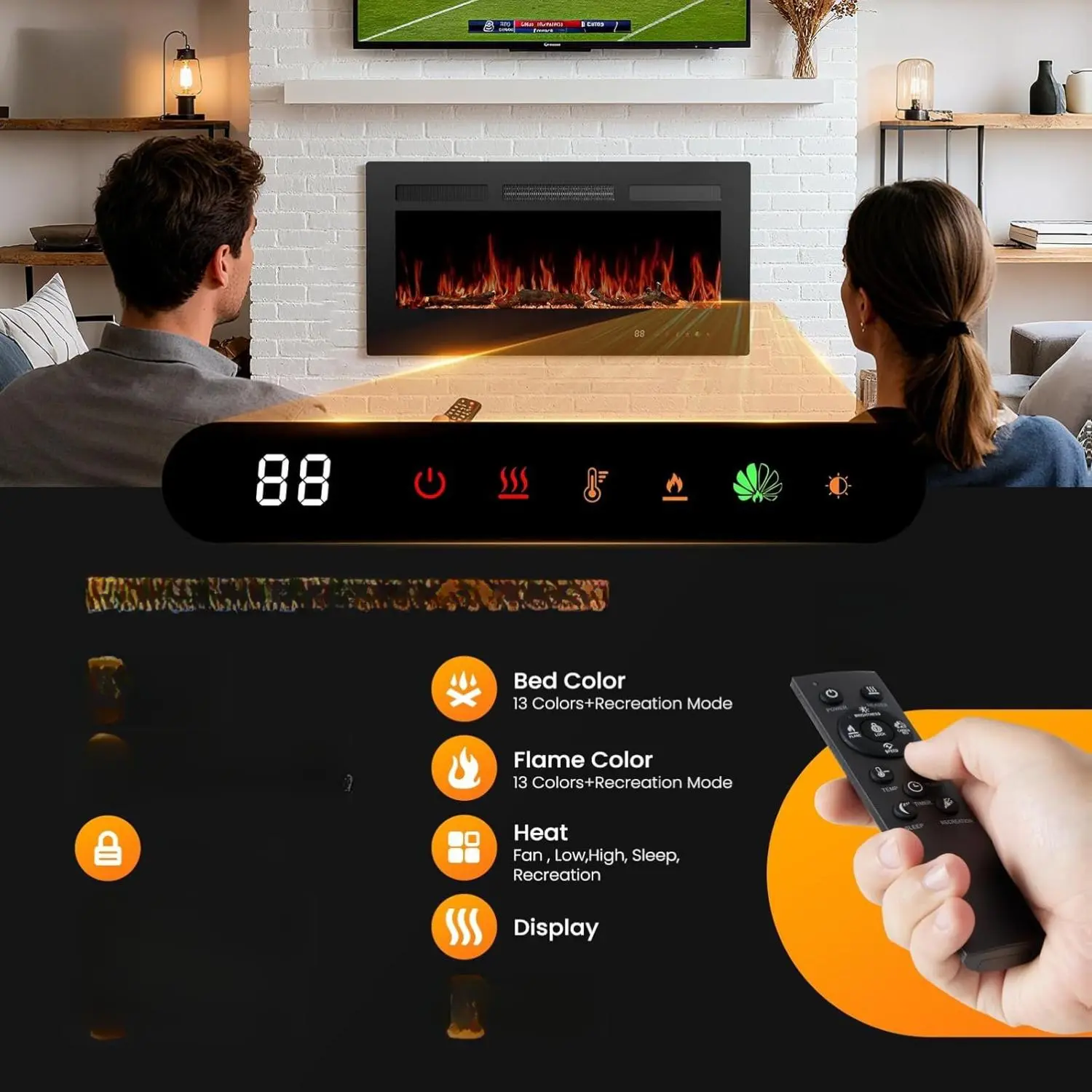 ·Realistic Flame: Adjust the flame effect to your desired color, speed, and light intensity. Whether you want a soft, flickering glow or a bright, lively flame, our electric fireplace provides a customizable experience that sets the perfect mood for your room