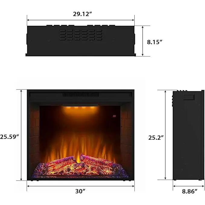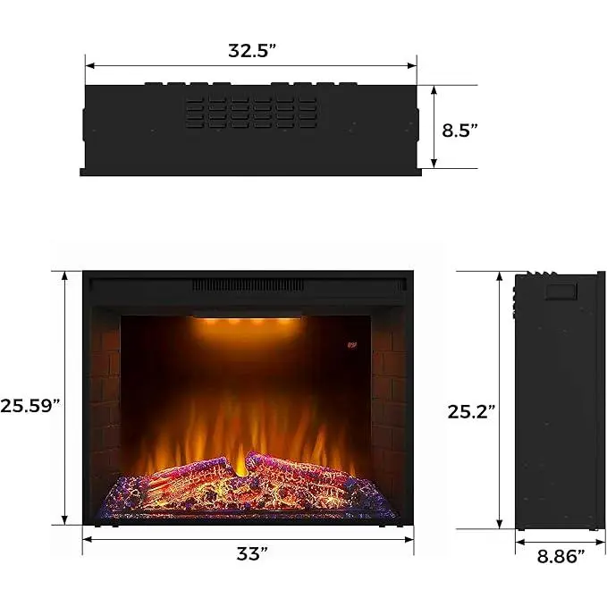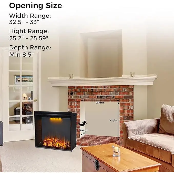 Heat Options: This electric fireplace insert can be operated with or without heat. Temperature range: 62°F-99°F, can't be used as a main heat source. 750/1500W, 1-9H Timer.