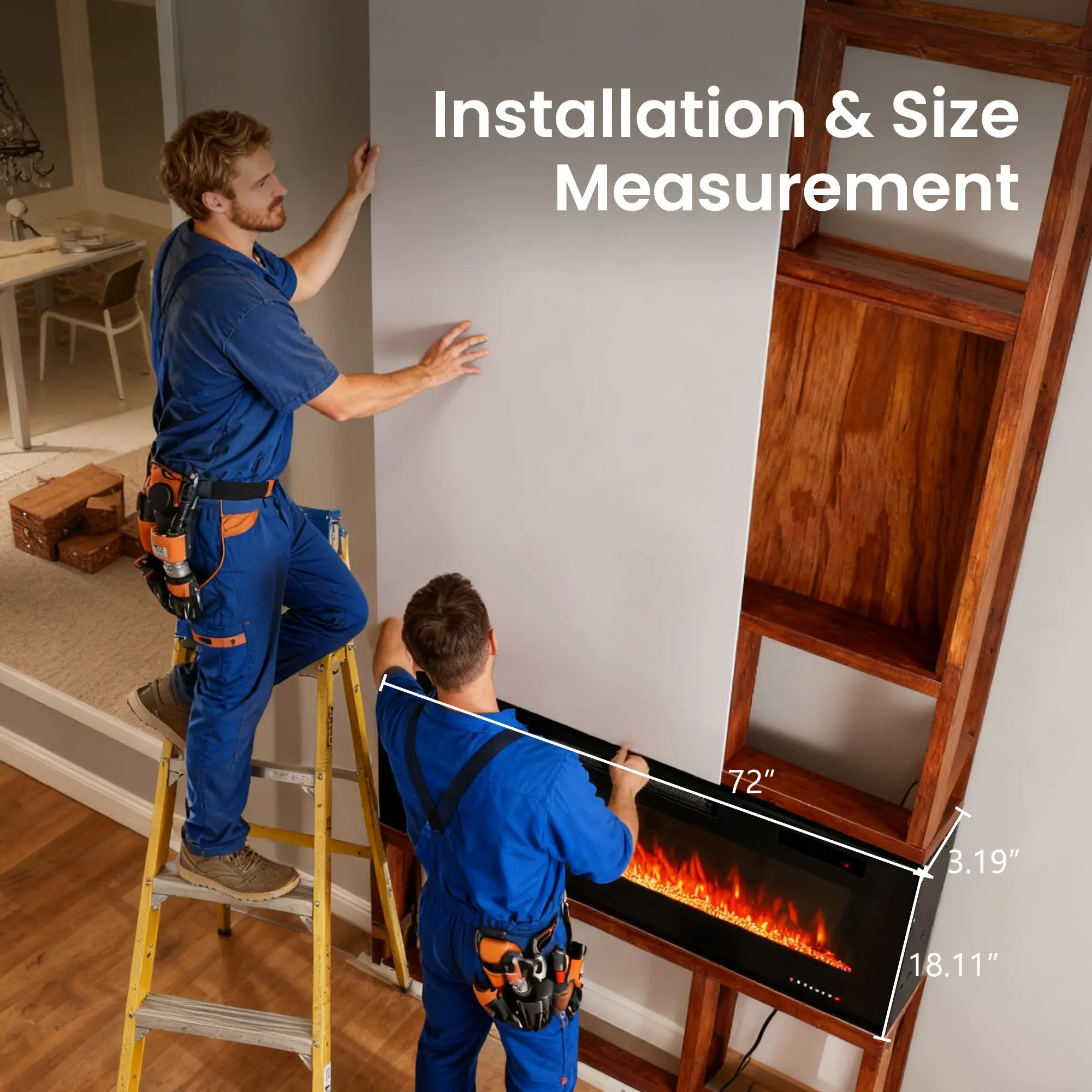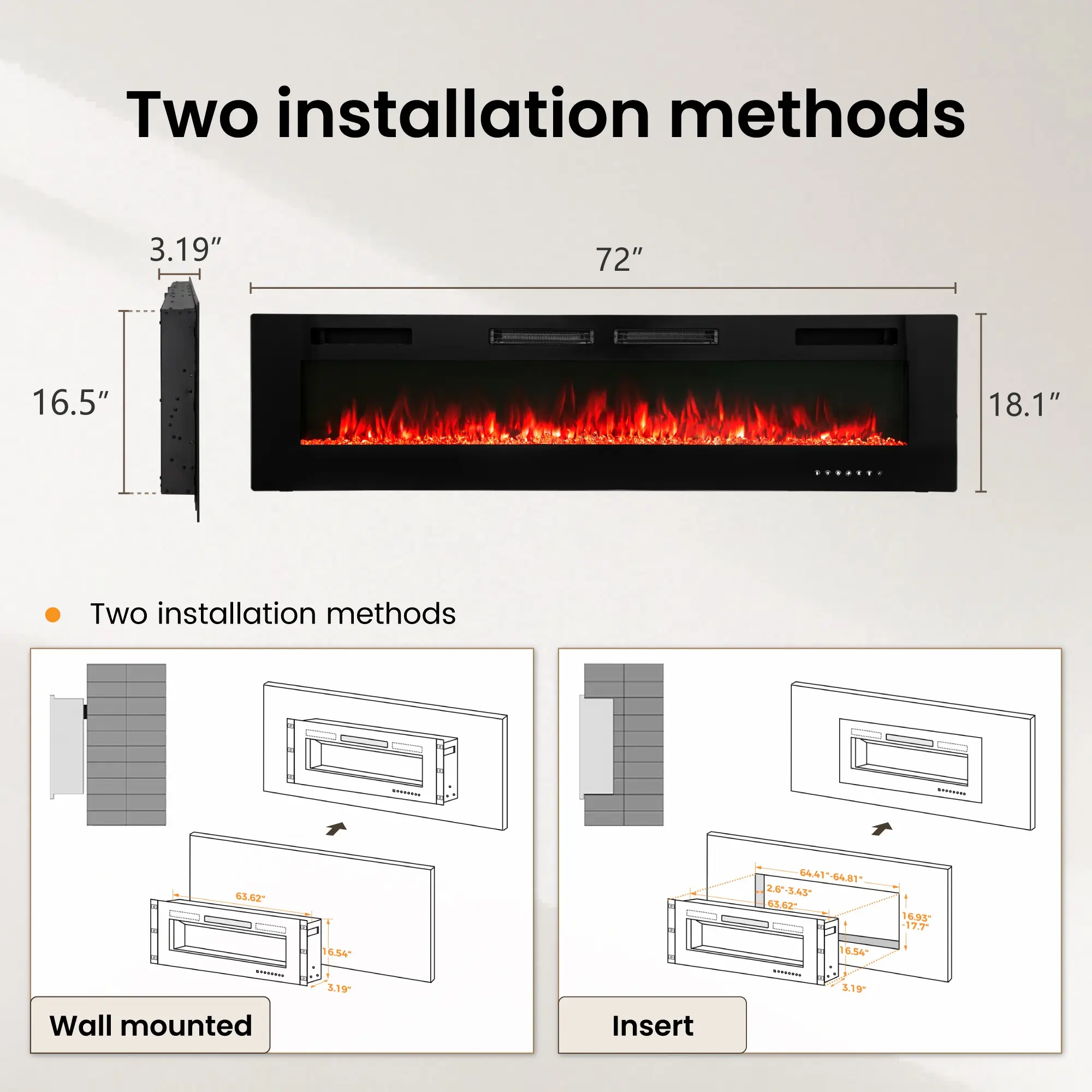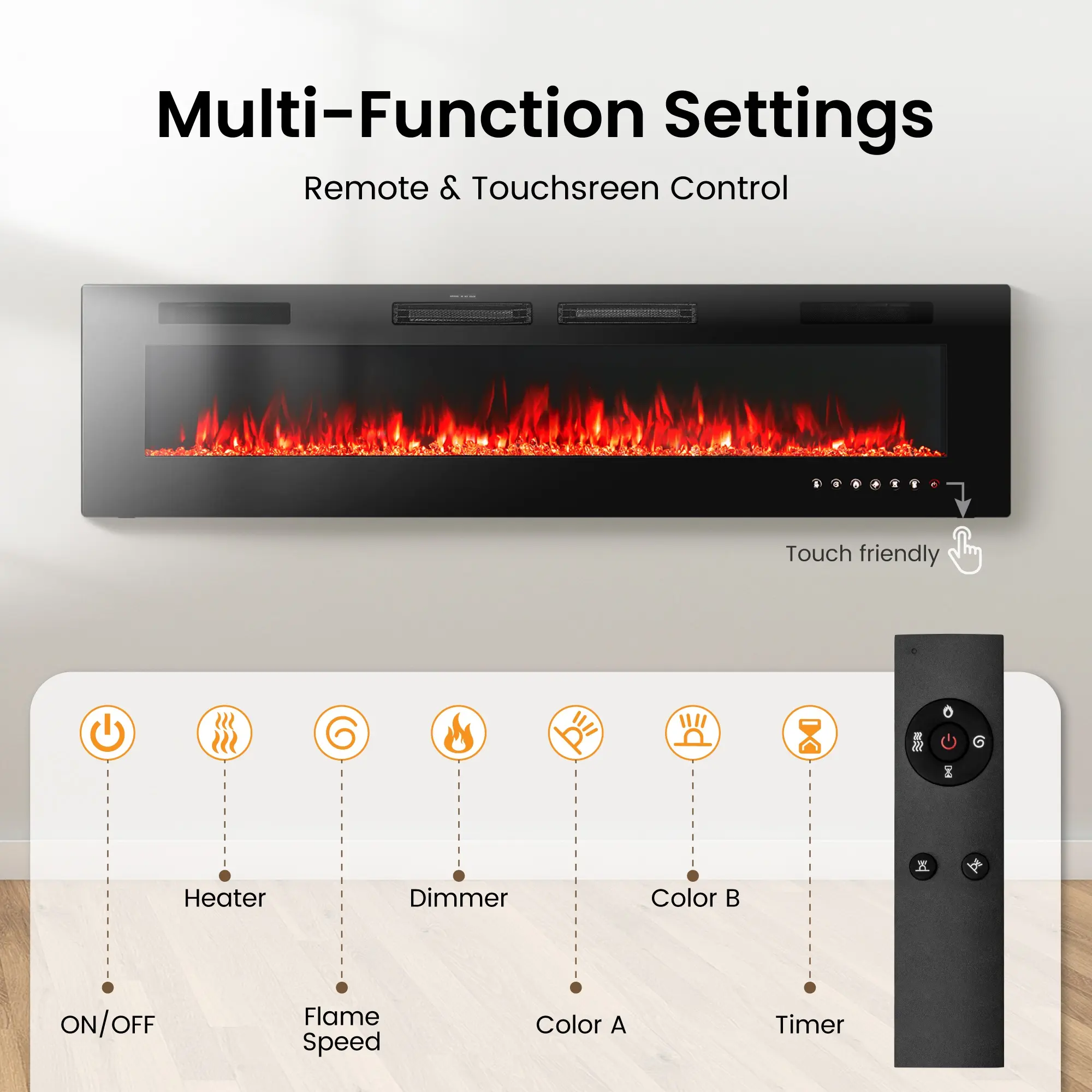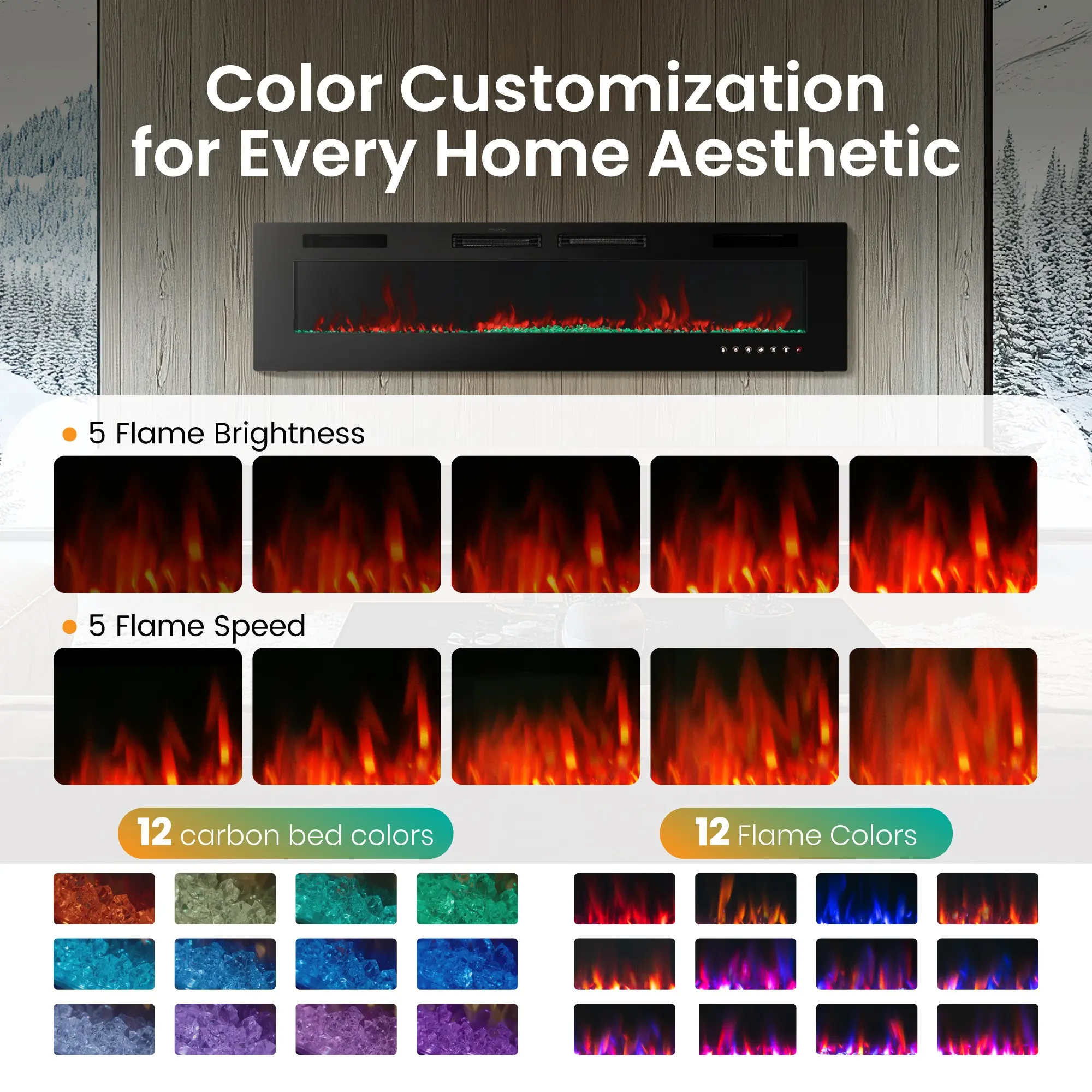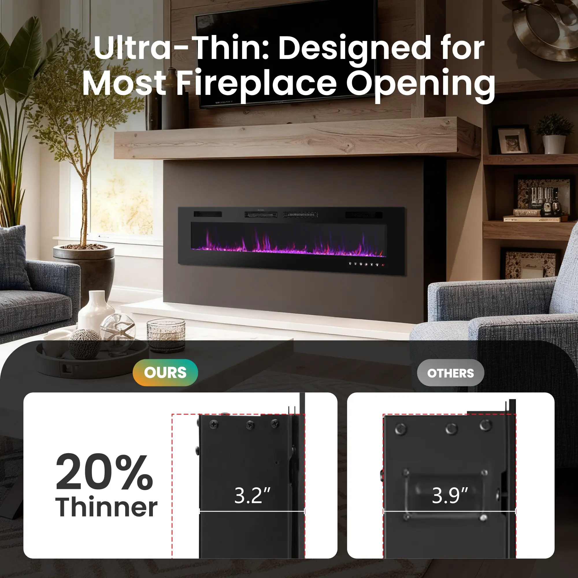 PHI VILLA 72" Electric Fireplace Wall Mounted & Recessed 750/1500W with Remote Control, 1-8 Hour Timer Function, Ultra-Thin Design Fan Hot Home Appliance Heater Flame Household Heating Fall Deals For You