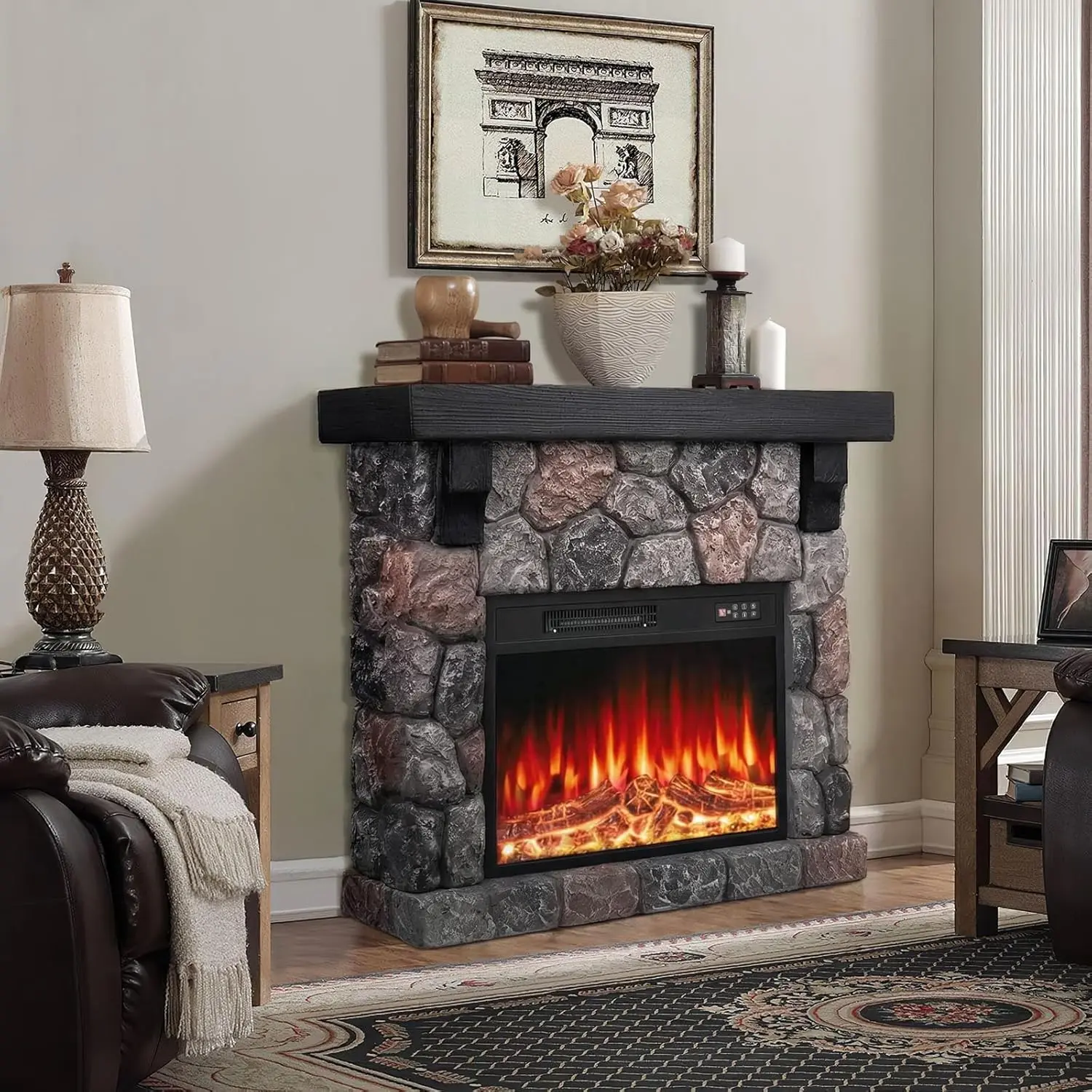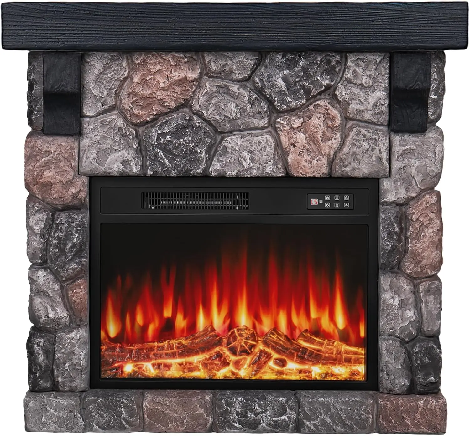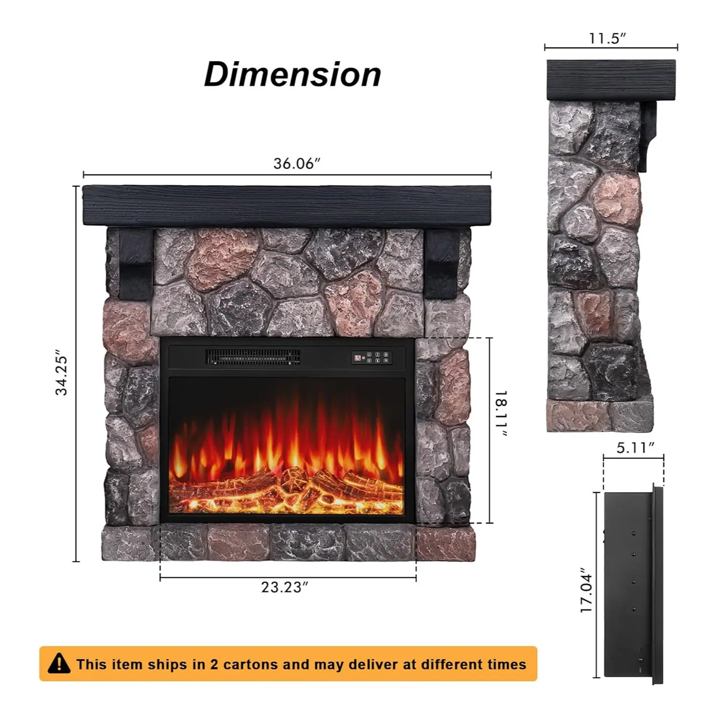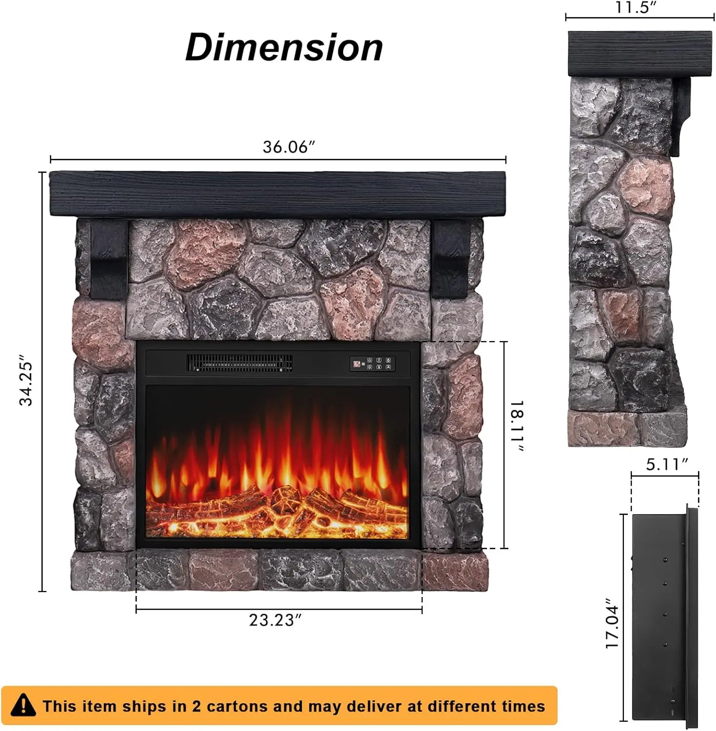 ·Realistic Faux Stone Fireplace Frame: This fireplace frame features an elegant stone veneer and desirable wooden accents, providing both a tactile and visual experience akin to a genuine stone. Dimension:11.5"D x 36.06"W x 34.25"H