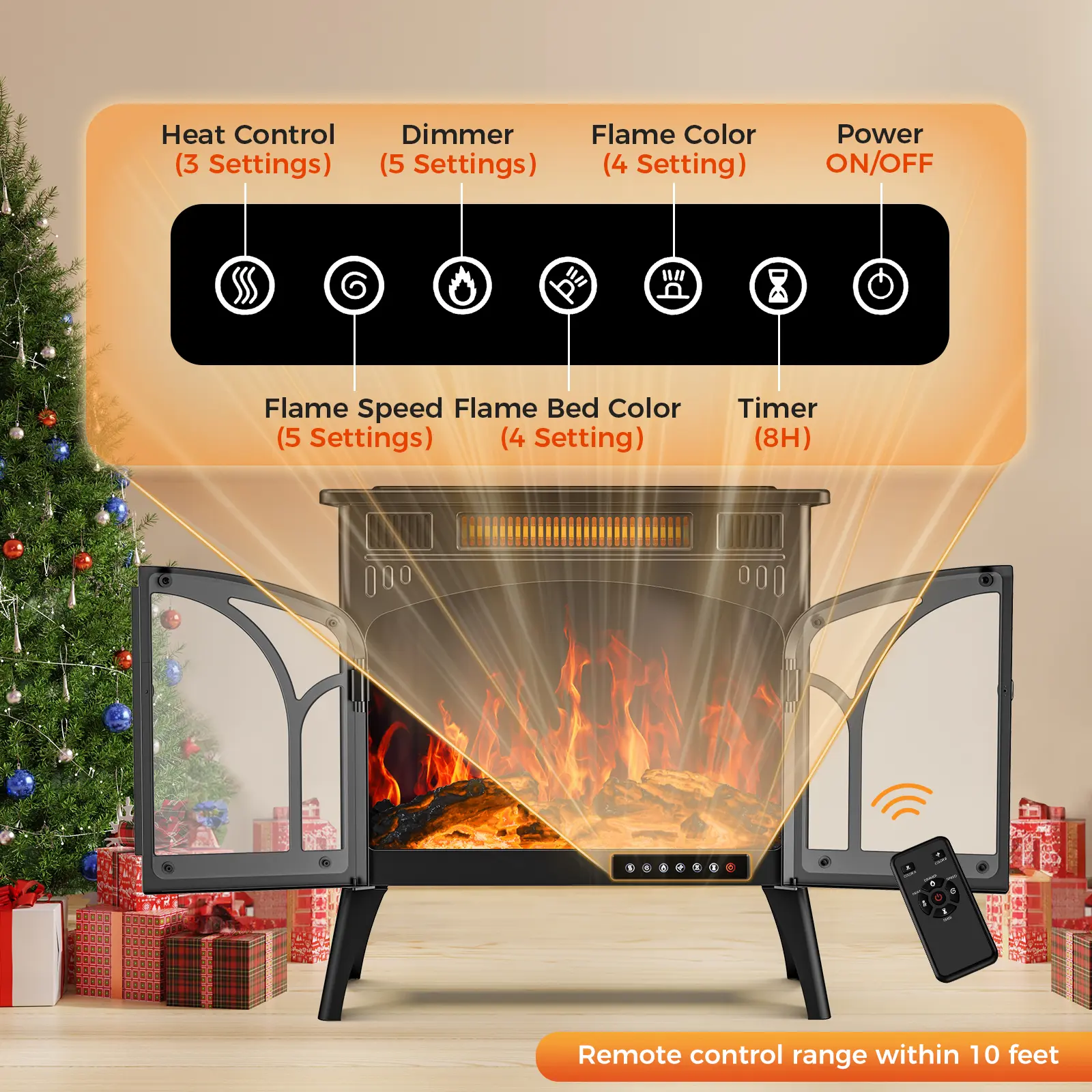 ·Adjustable Brightness& Speed:5 adjustable brightness levels and speed settings, creating the effect of a rolling and realistic flame as you desired. Electric fireplace heater provides you supplemental zone heating for your bedroom, living room etc. and create a warm environment for your whole family as well. Free of chimney and ash.