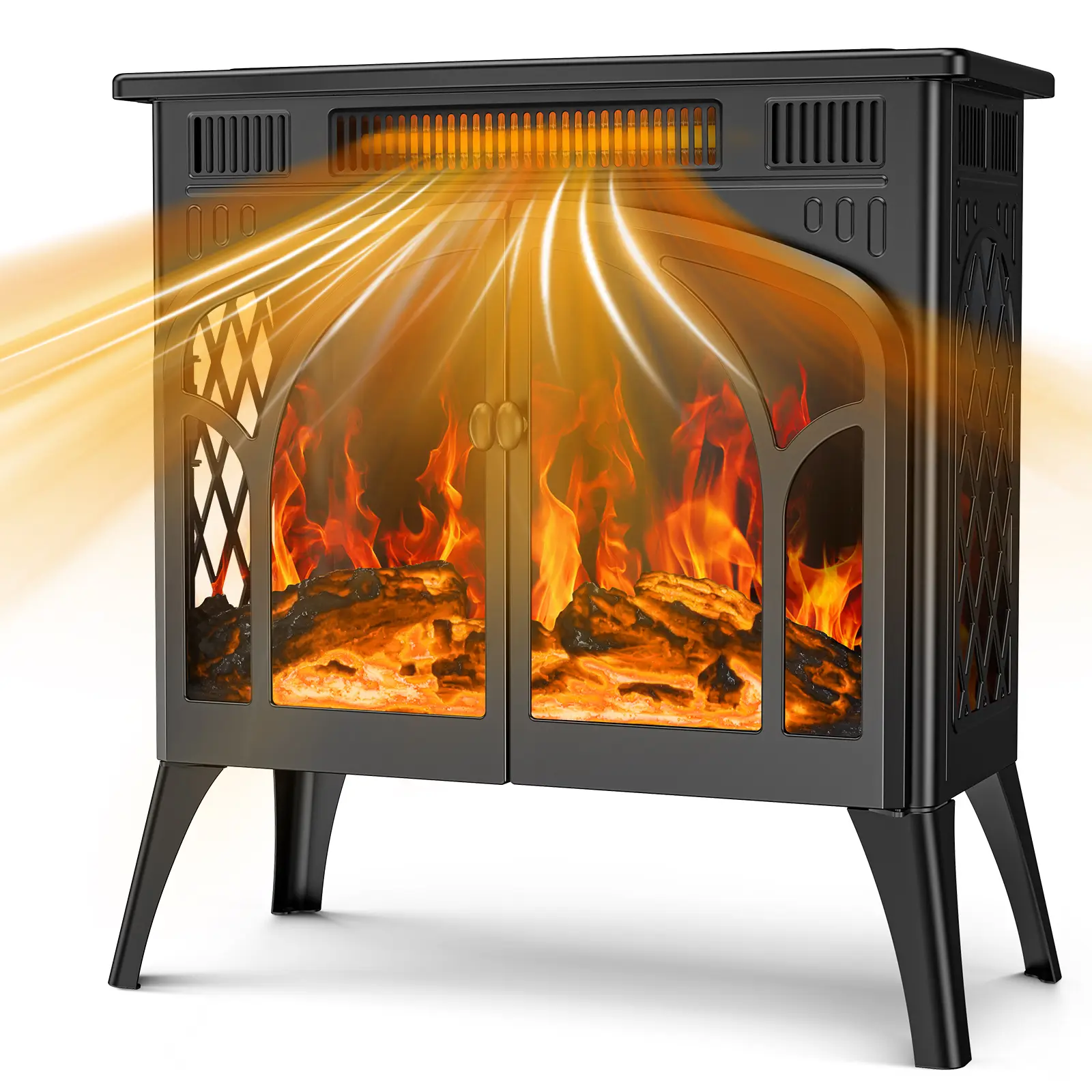 ·Fast Heating Space Heater :Differ from traditional fireplace which makes your room with smoke and costs high amounts of money on wood and sweeping chimney, RWFLAME Free-standing Fireplace is an economic choice for you. Powerful— MAX 1500W, 5100BTU. The portable size of 10.7"(D) x 23.5"(W) x 24.3"(H)