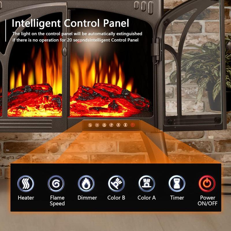 [Simple Operation & Remote]: Remote and the control panel make it more convenient to control every function of electric fireplace. All-metal design, makes the stove more durable and special. The button of Color A and Color B can not only switch the color of the flame and the flame bed respectively, but suit with your daily mood.