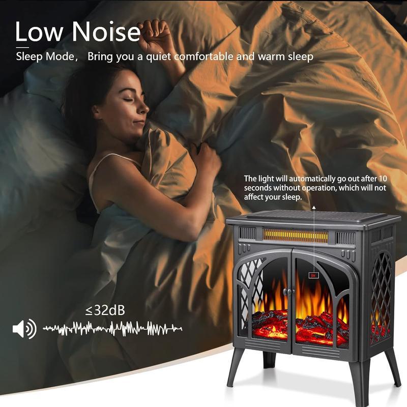 [Fast Heating Space Heater]: Differ from traditional fireplace which makes your room with smoke and costs high amounts of money on wood and sweeping chimney, Antarctic Star Free-standing Fireplace is an economic choice for you. Powerful— MAX 1500W, 5100BTU. The portable size of 23.5"(L) x 10.7"(W) x 24.3"(H)
