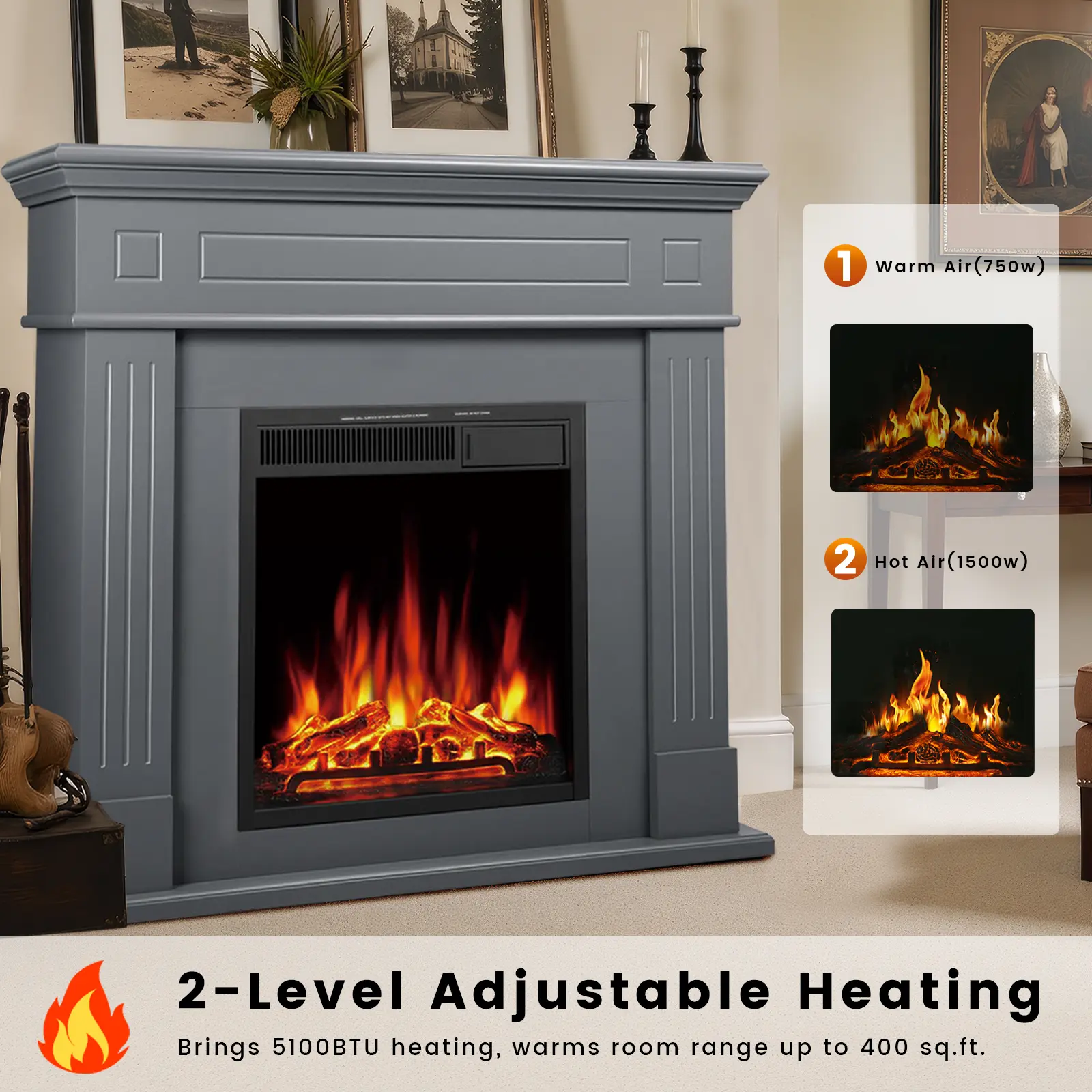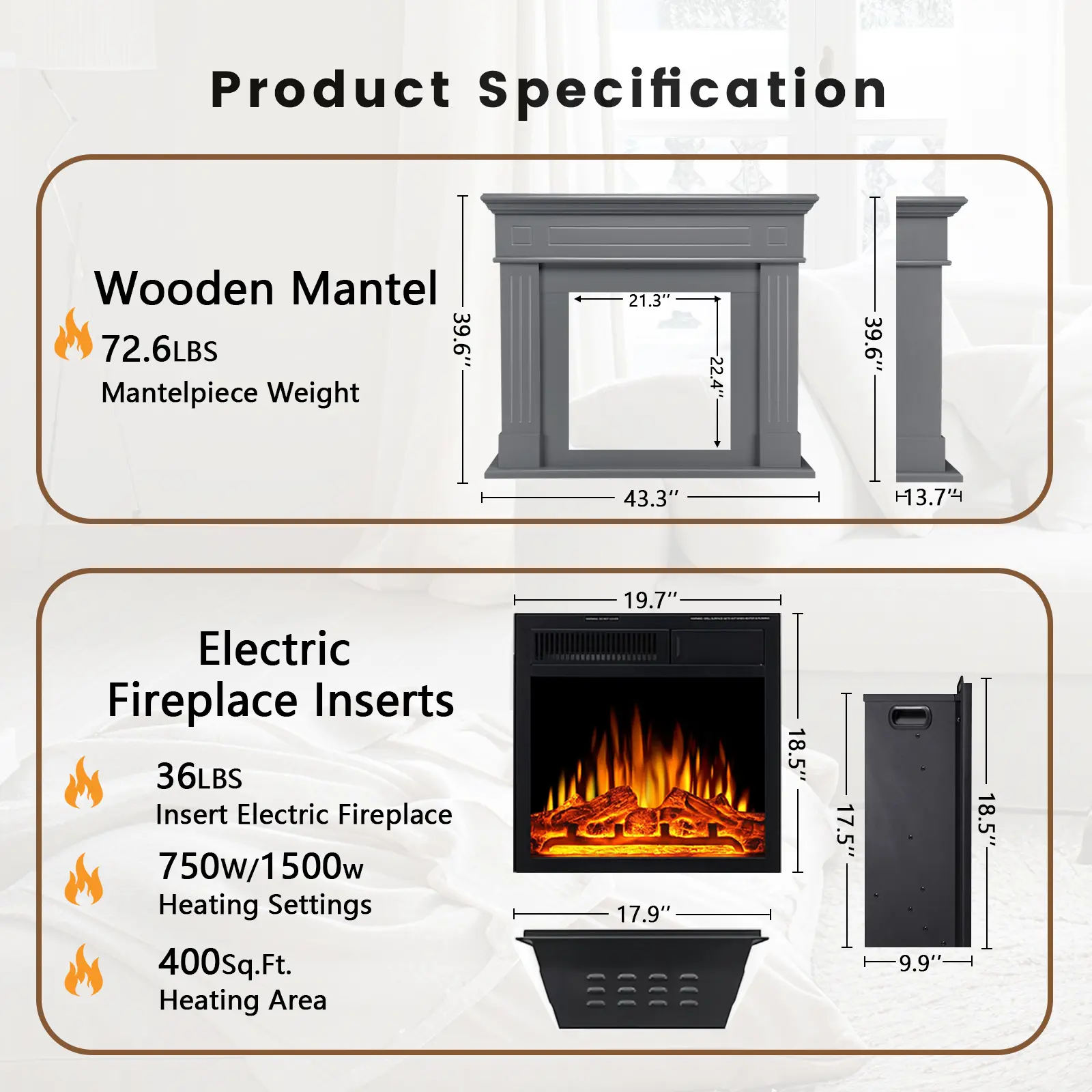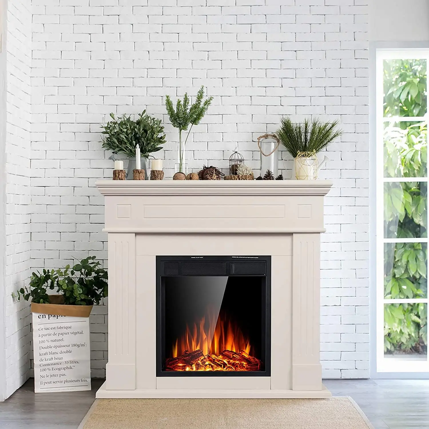 Very beautiful mantle with a very realistic and beautiful fire. I’ve bought several ‘fake’ fireplaces but this is my favorite one.