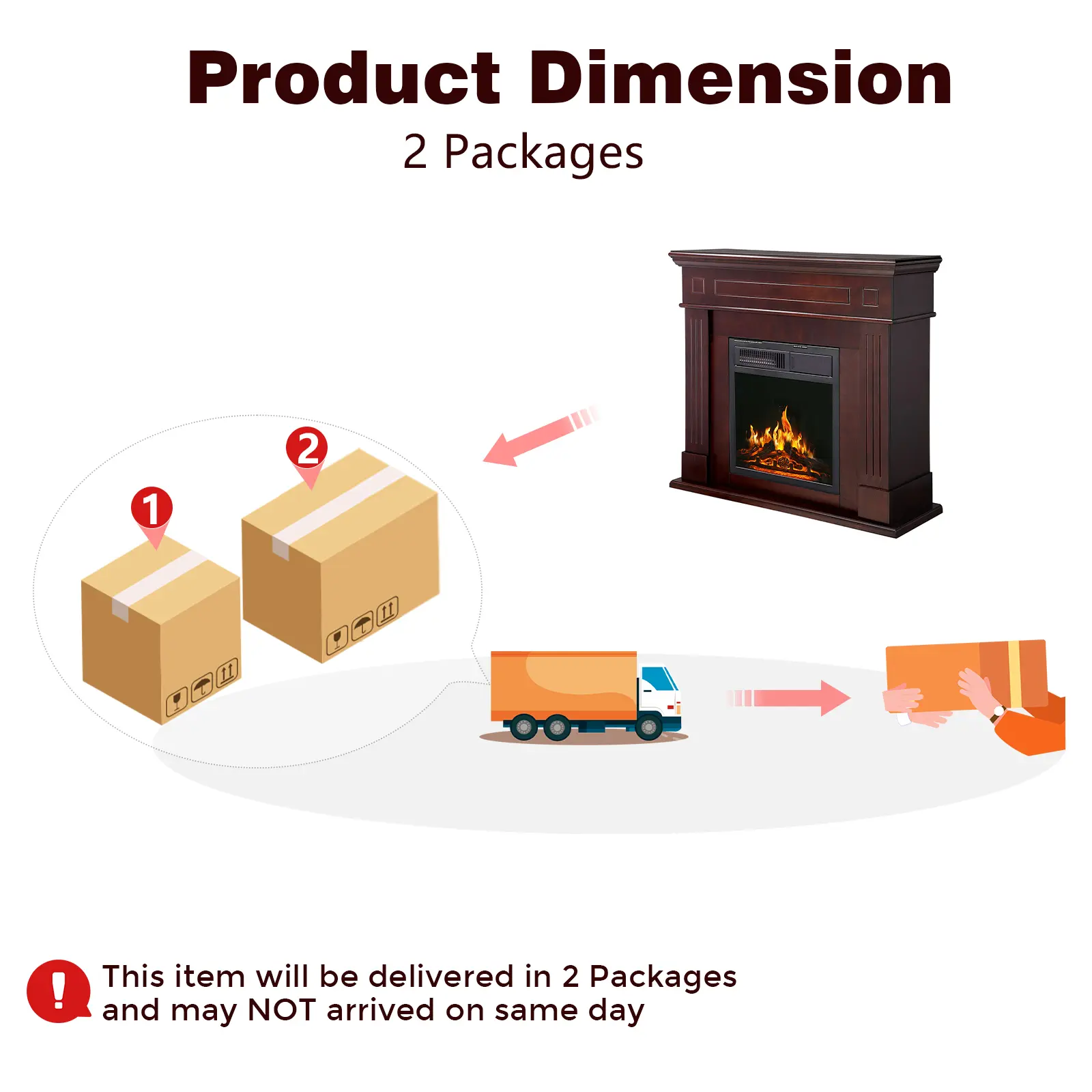 I received the fireplace in two deliveries. Beautiful and easy to assemble. ! I would buy it again.