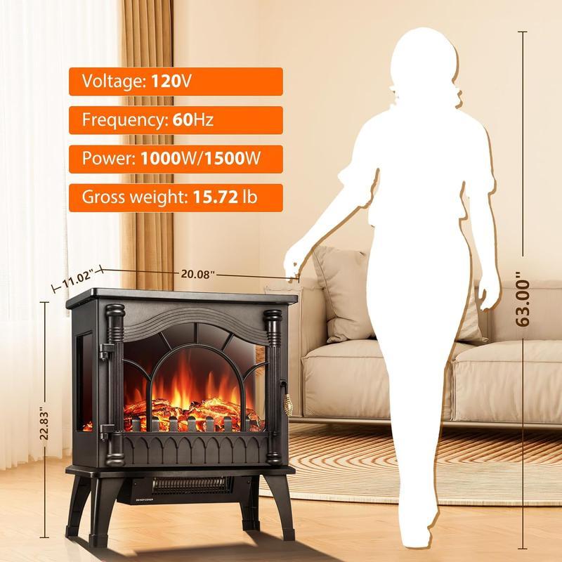 【Fast Heating Space Heater】: Differ from traditional fireplace which makes your room with smoke and costs high amounts of money on wood and sweeping chimney, Antarctic Star Free-standing Fireplace Stove is an economic choice for you, which has 2 heating power modes: 1000W/1500W. The portable size of 11.02"D x 20.08"W x 22.83"H.