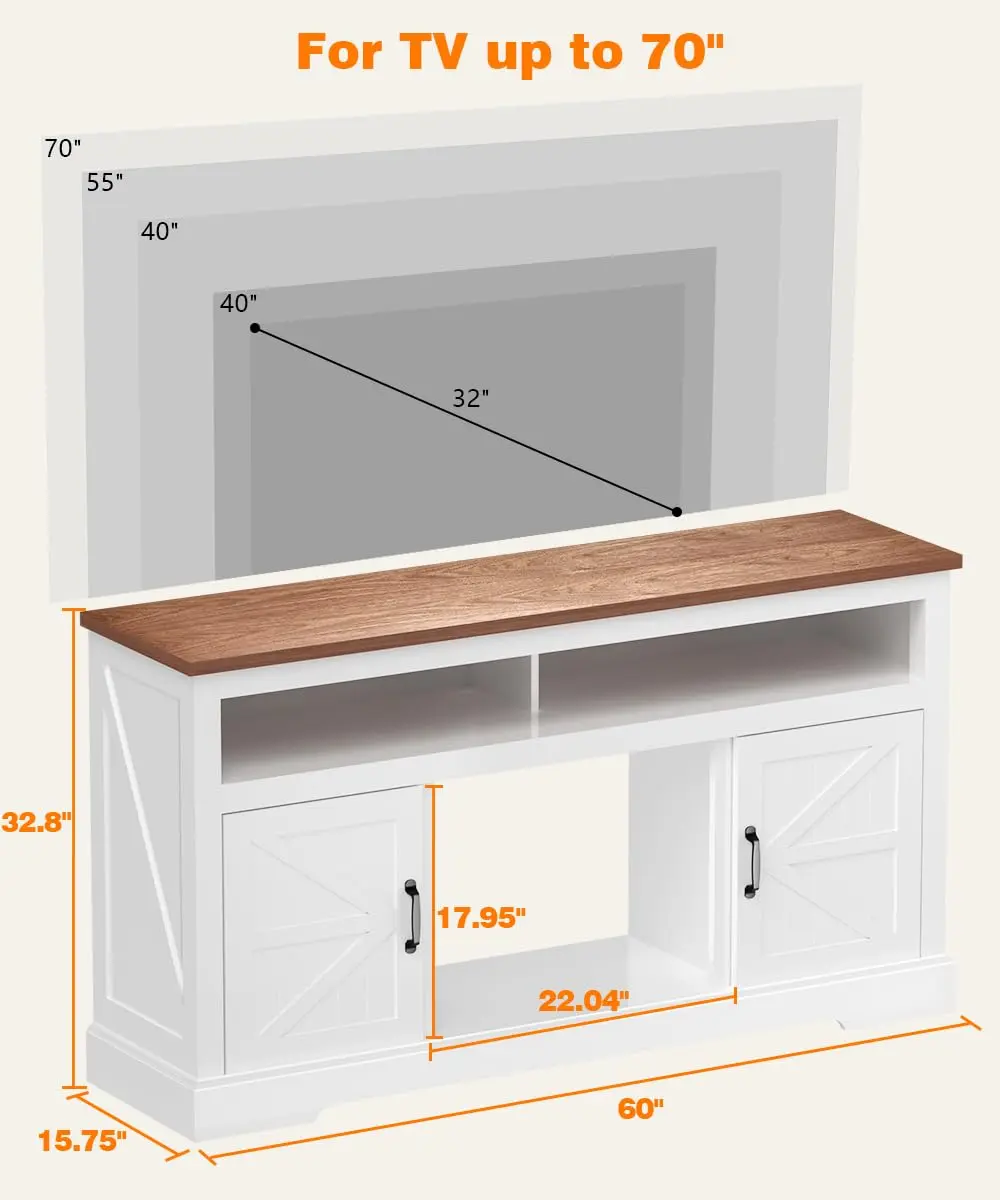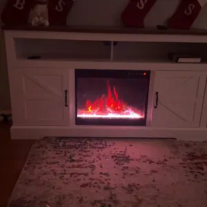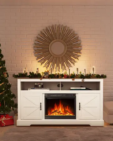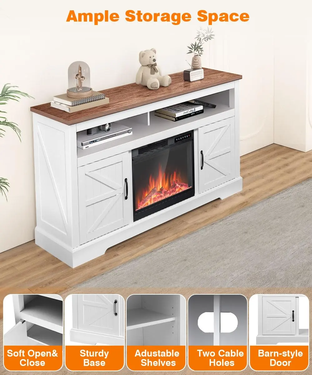 ·Ample Storage with Cable Holes: COWSAR fireplace TV stand comes with two open shelves and two barn door cabinets with 5-level adjustable shelves, making it is well suited to store various entertainment systems. In the back of the TV stand, two cord management ports can keep your cables tidy. With quality steel bars, doors slide smoothly and no noise during movement.