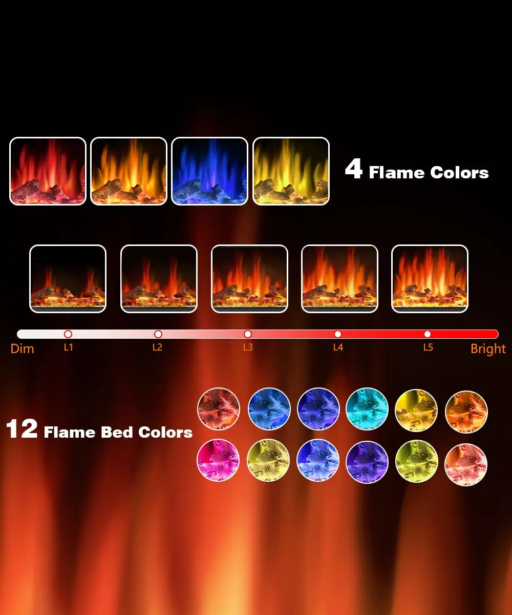 ·Multifunctional Fireplace: Flame color and brightness of the electric heater can be changed via the control panel or remote control. Although the fireplace is a simple plug-in unit, it also offers timers with automatic shut-off as well as 5 flame speed settings. Meanwhile, the flame effect and heat can be turned on separately, giving you more choices to set the mood for any occasion.