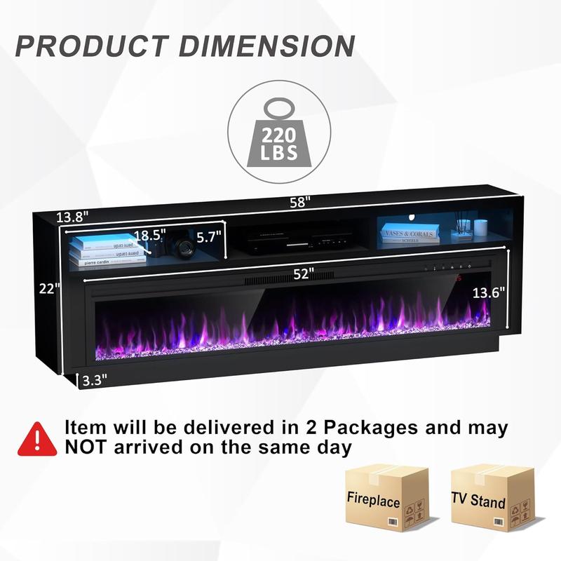 ·TWO Packages: Entertainment center with fireplace will be delivered in TWO packages, and may not be delivered at the same time. We have provided you with detailed instructions and web installation videos to help you install quickly