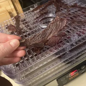 This is the perfect countertop dehydrator. It made the process of making beef jerky smooth and seamless. There was no guessing if all the trays were going to be done at the same time. Our family loves it! We did beef chips first and within 5 hours our family was ready to snack.