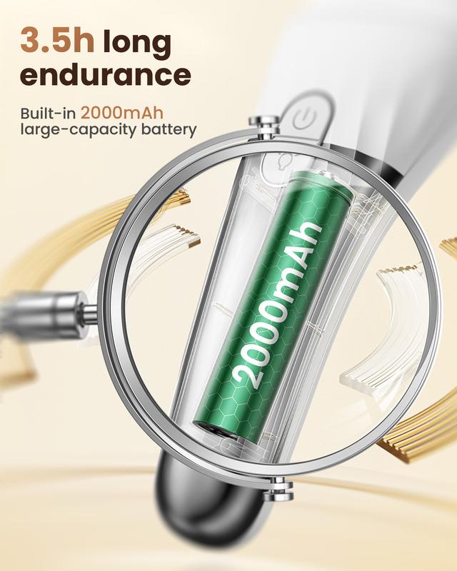 【Rechargeable & Equipped with Battery Display and Light】The high-quality electric foot file features a large capacity 2000mAh lithium battery that can operate for approximately 180-210 minutes with just a 2-3 hour charge time. It also includes digital battery display and light that shows the remaining battery life and when to charge. Foot care for women, this dead skin remover's light turns on automatically when the foot file is working, providing illumination on the targeted area of dead skin.