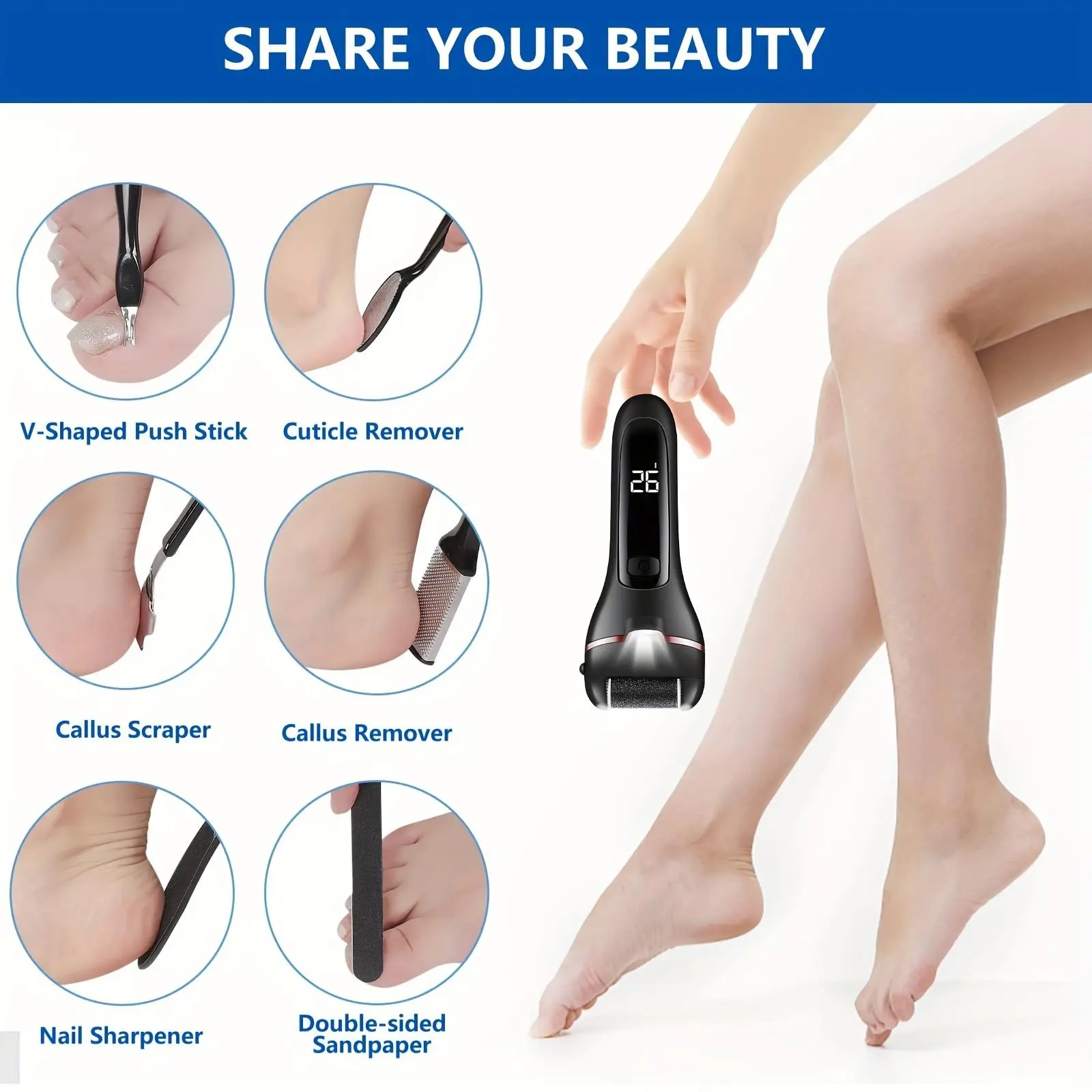 I have had thick calluses for almost 20 years. So I walk wrong. causing calluses on my feet. I have used various products.. none as good as this! Rechargeable, has a light, different textures on sanding stones, 2 speeds, other aiding items to remove calluses. Great buy, and cheap! I recommend! Fast!